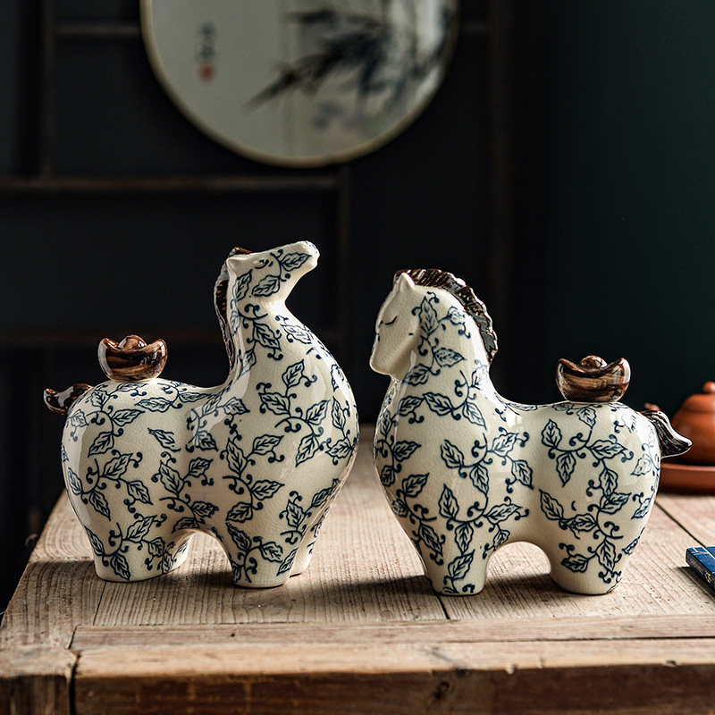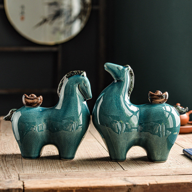 马上有钱摆件招财办公室装饰品高档新中式客厅博古架乔迁开业礼品