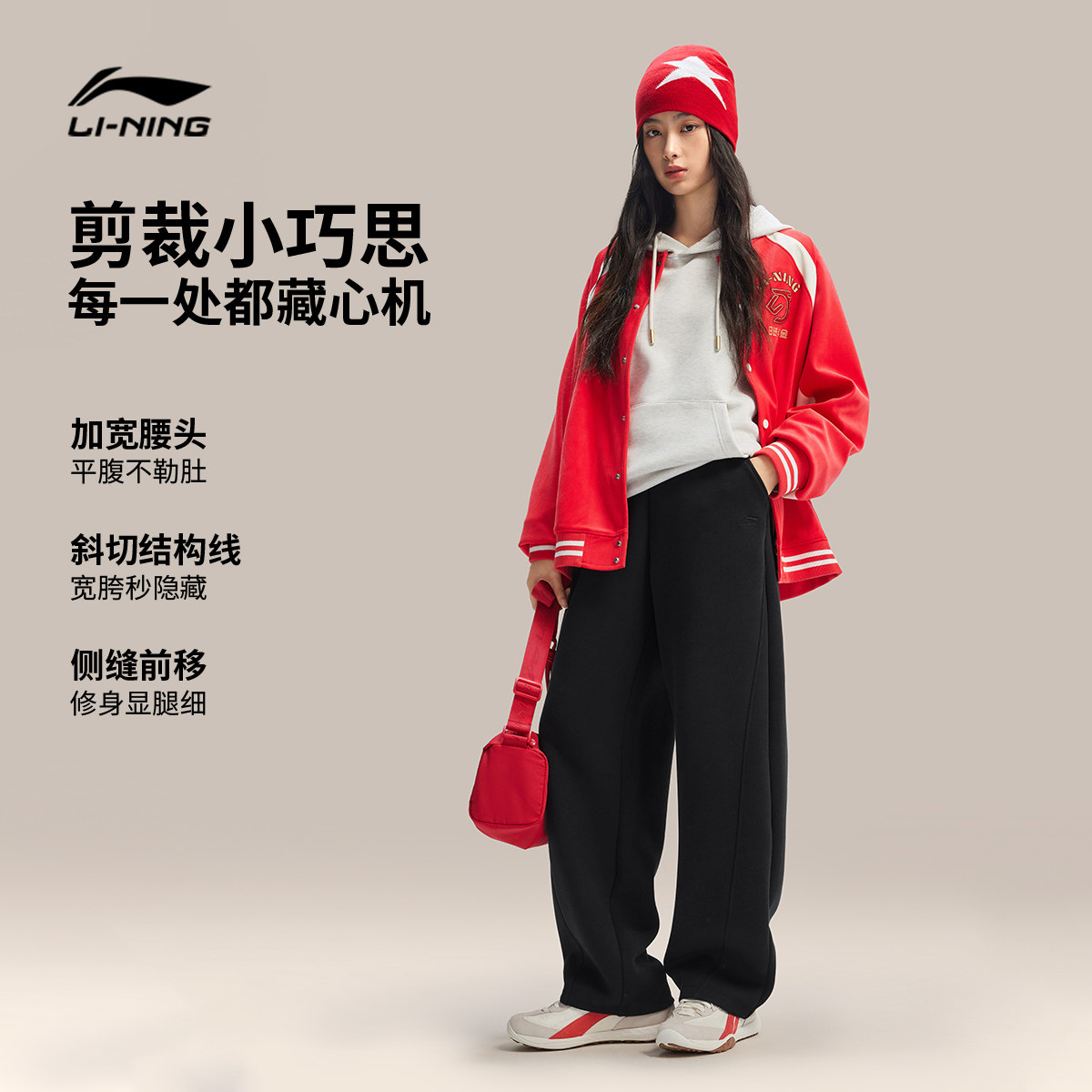 李宁弯刀裤日进斗金2026马年限定新款女士长裤春季休闲直筒运动裤