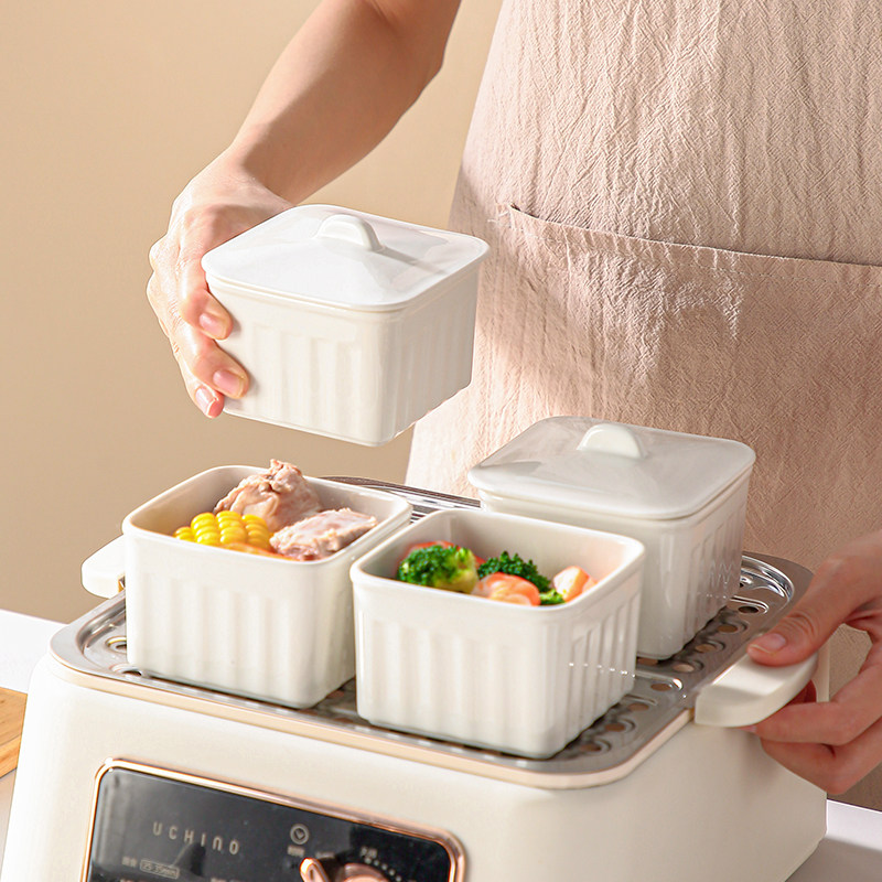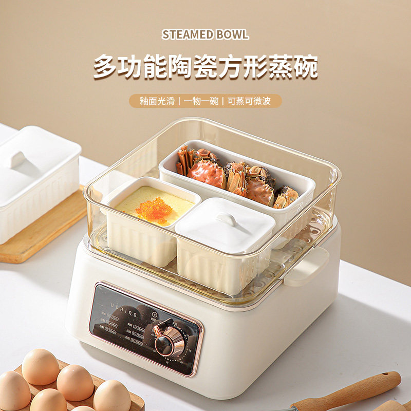 家用电炖锅专用方形炖盅蒸碗蒸蛋电蒸箱碗带盖陶瓷瓦罐隔水炖蒸盅