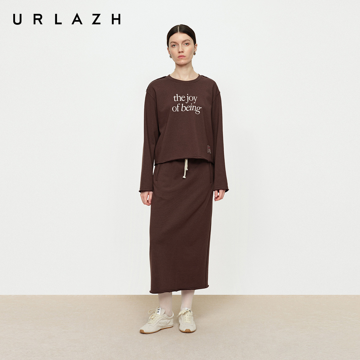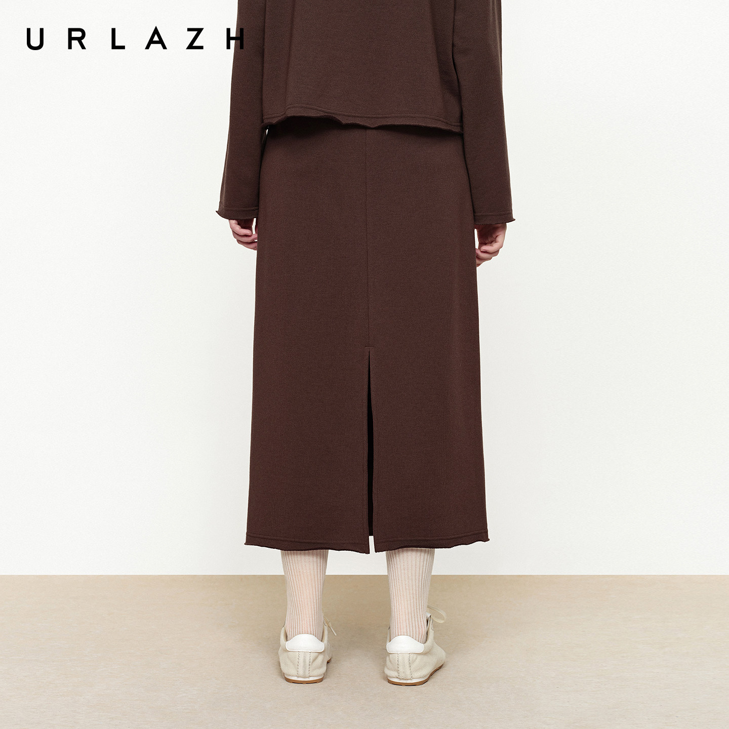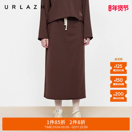 商场同款URLAZH有兰2025冬季新款摩卡棕后开叉松紧腰直筒半身裙女