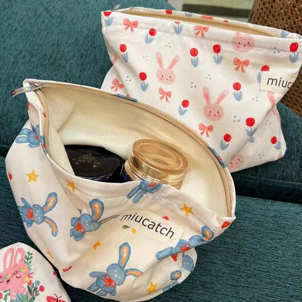 卡通兔子花朵印花棉布化妆包帆布