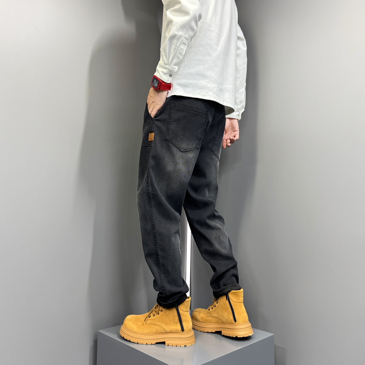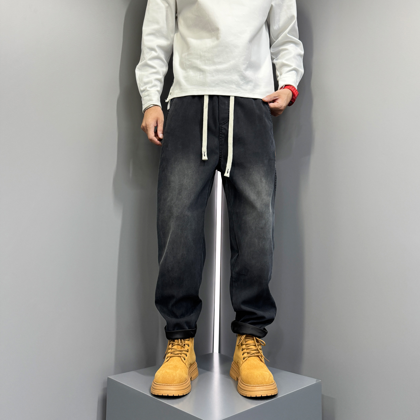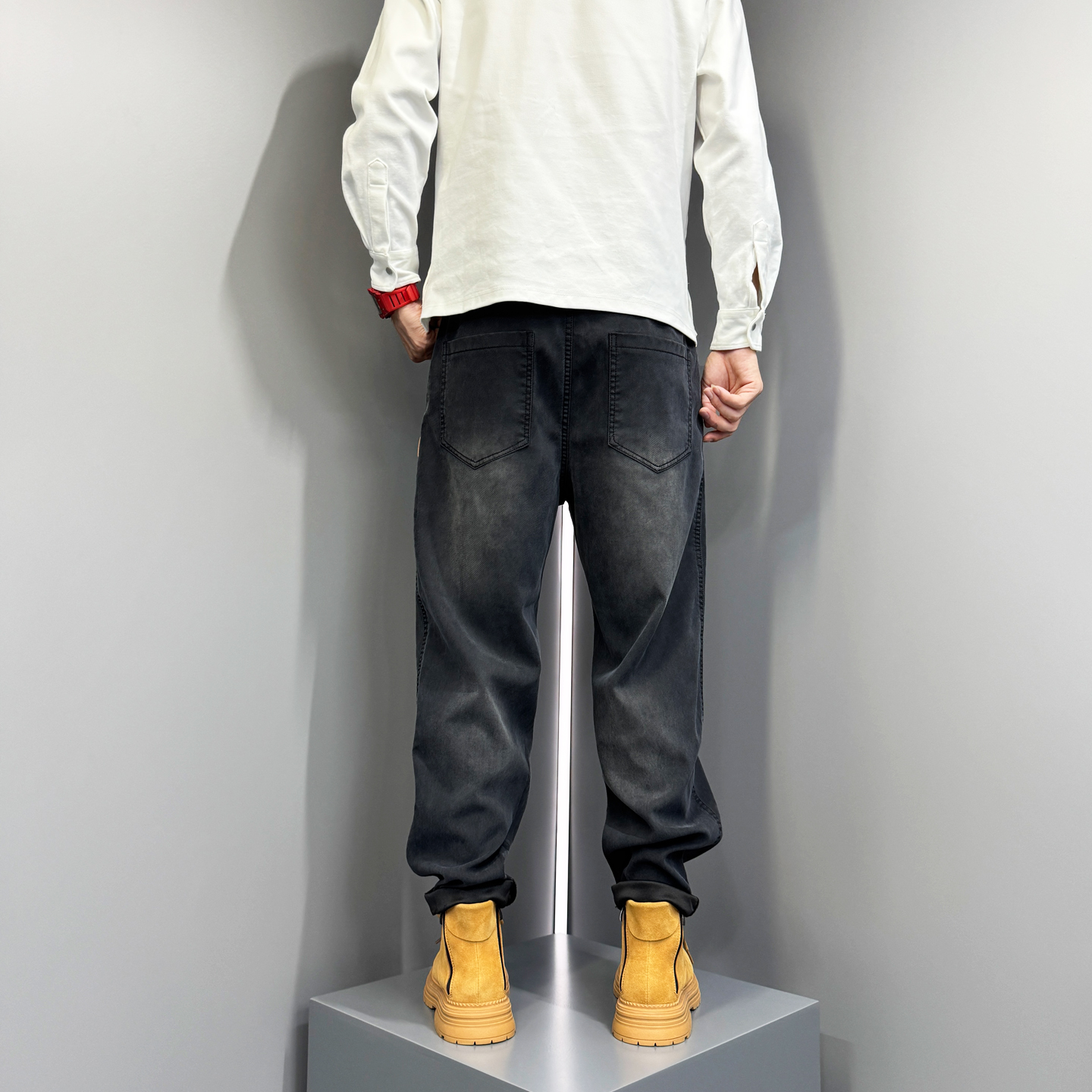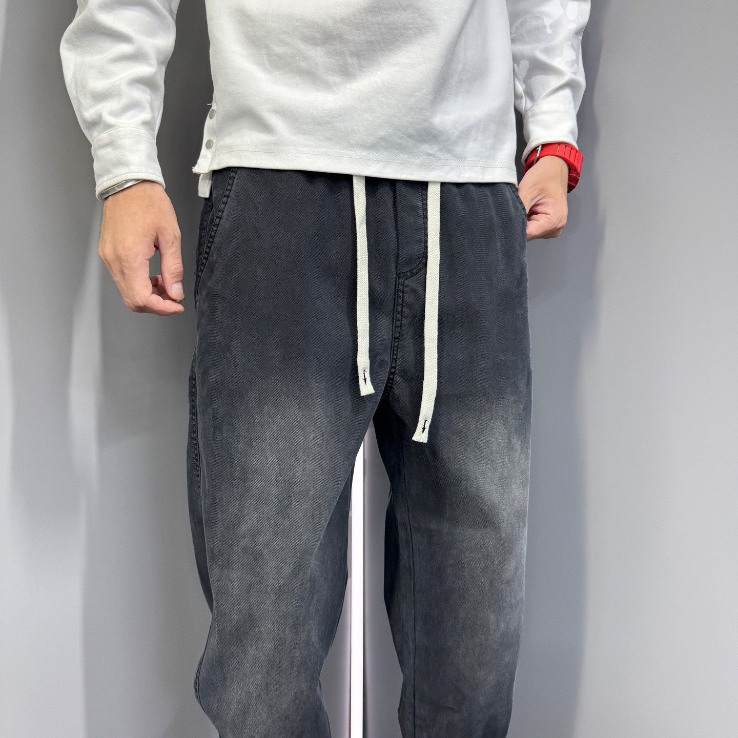 2025早秋新款渐变牛仔裤宽松水洗哈伦裤男士复古做旧阔腿小脚裤子