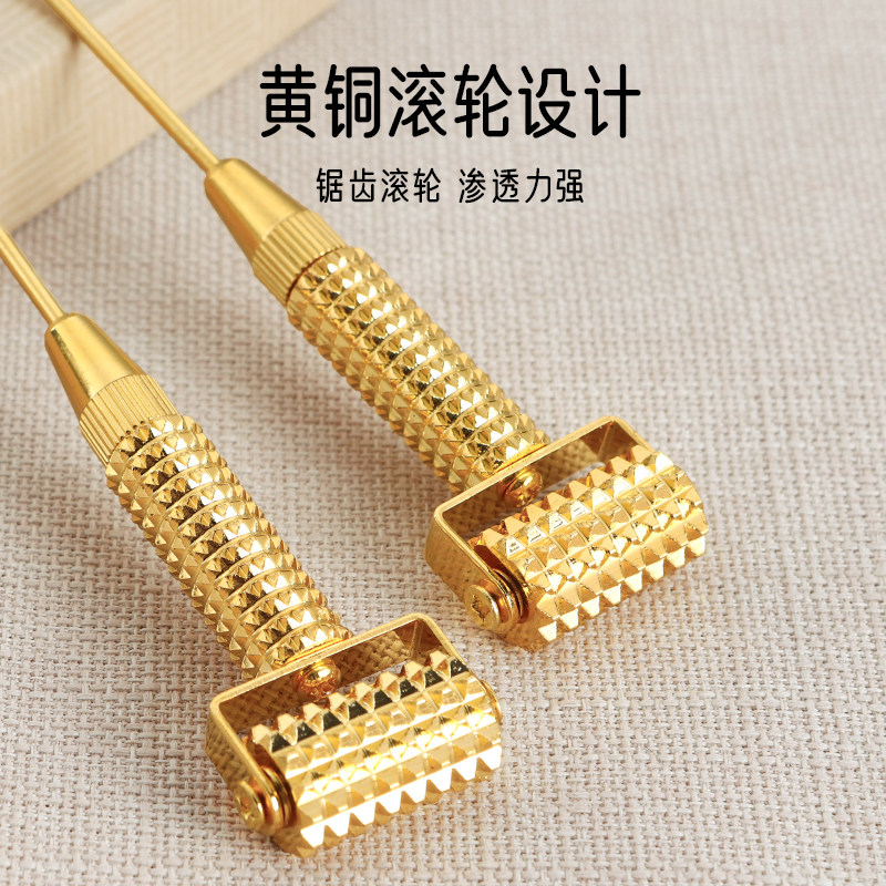 丰林黄铜微针滚轮按摩锤面部美容眼部多功能探穴笔耳穴探针按摩棒
