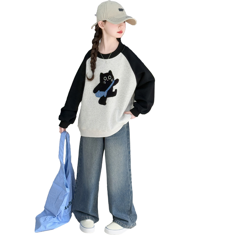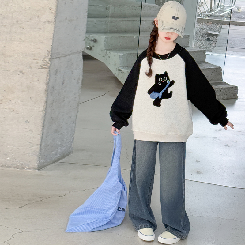 女童春装卫衣套装2025新款女大童洋气春秋款上衣儿童牛仔裤两件套