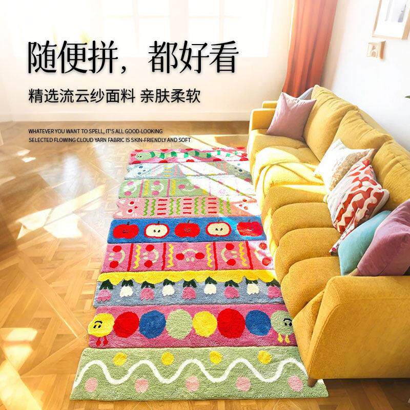 多巴胺彩色苔藓床边毯房间改造灿烂氛围感地垫时尚客厅艺术地毯
