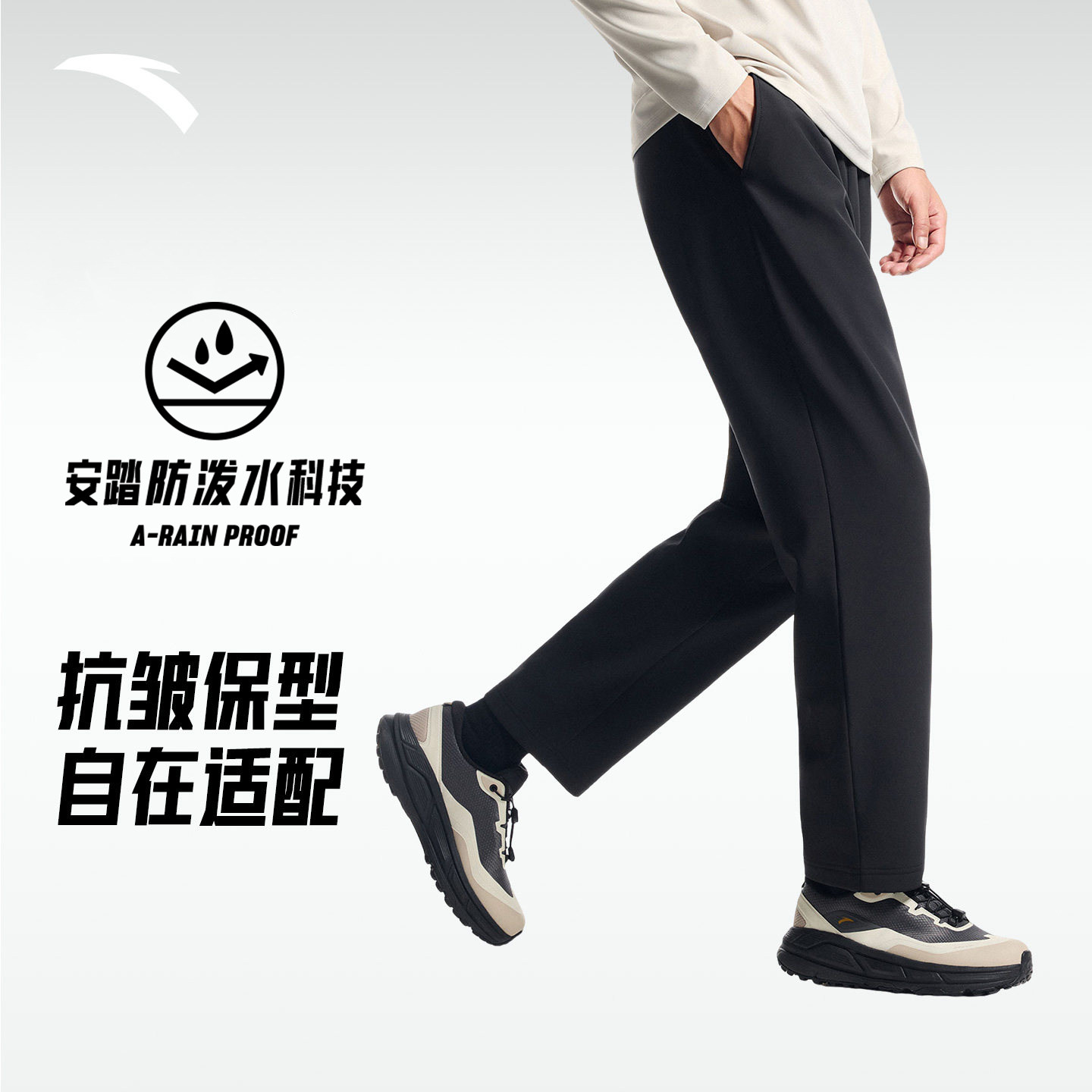 安踏男梭织休闲直筒长裤