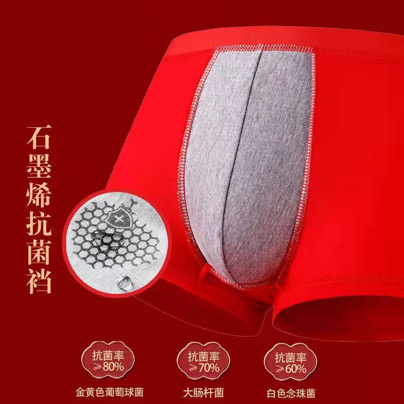 红色男士内裤纯棉透气平角裤衩抑菌本命年属蛇龙礼物四角短裤头WS
