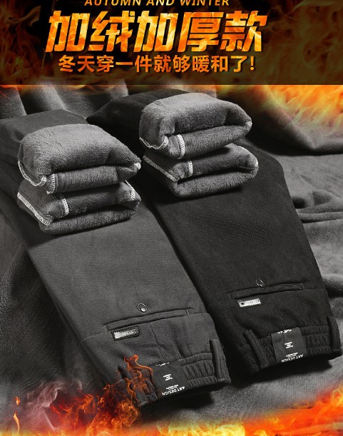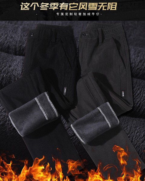 秋冬加厚植绒保暖防冻灯芯绒帅气免烫上班都市直筒休闲裤韩版男装
