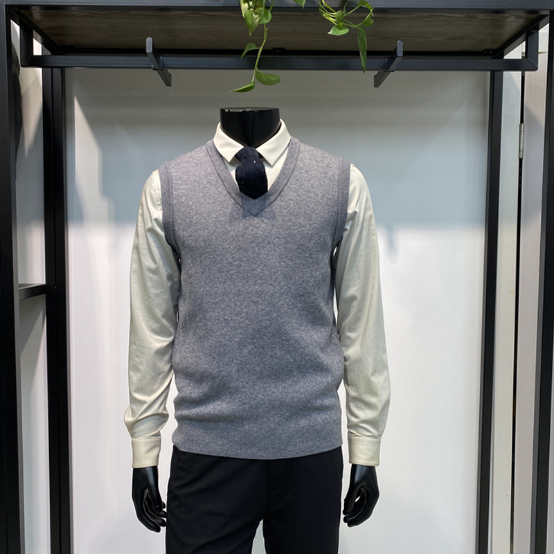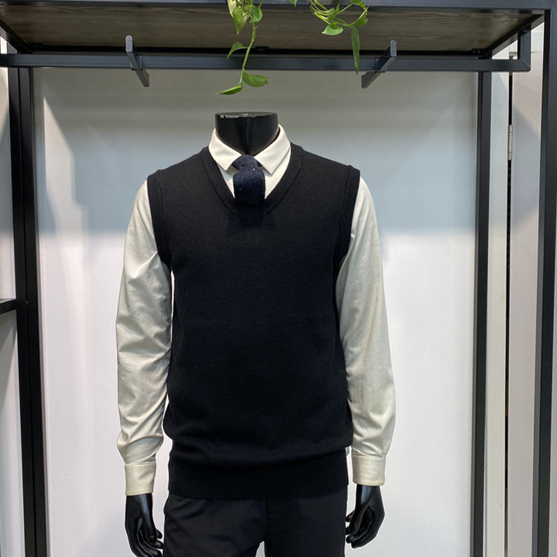 超值全羊毛25年冬季新品男士毛背心商务马甲上衣保暖坎肩领佐品牌