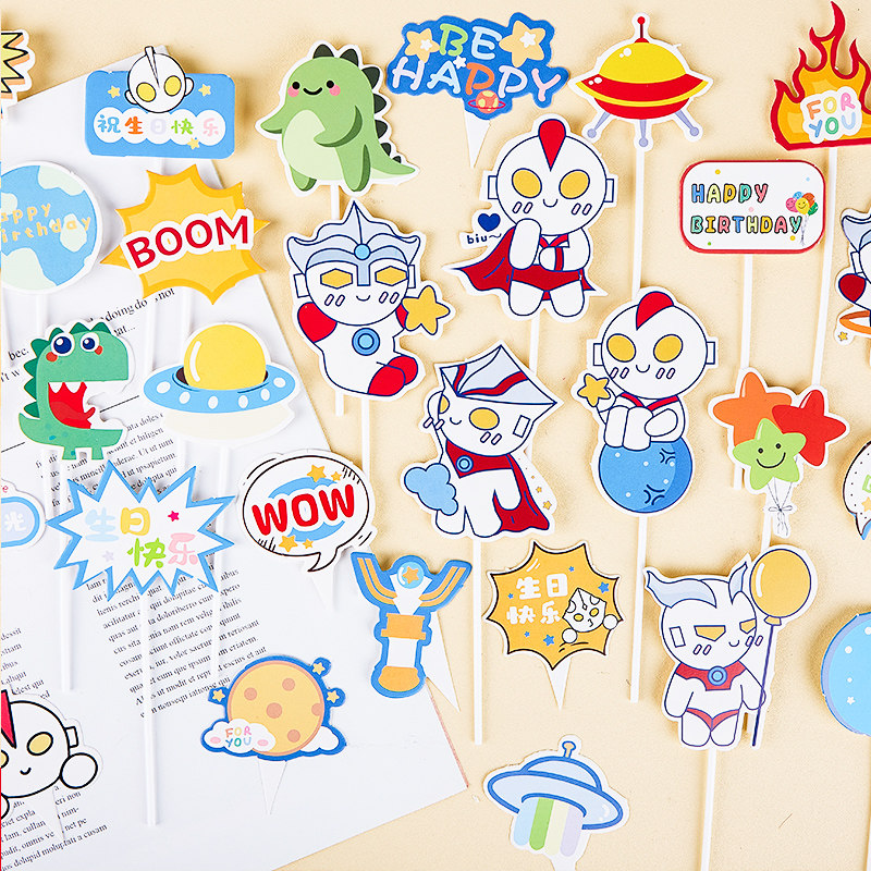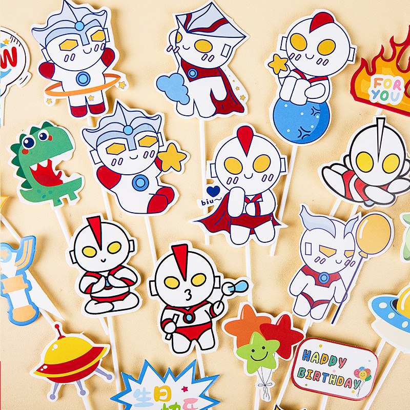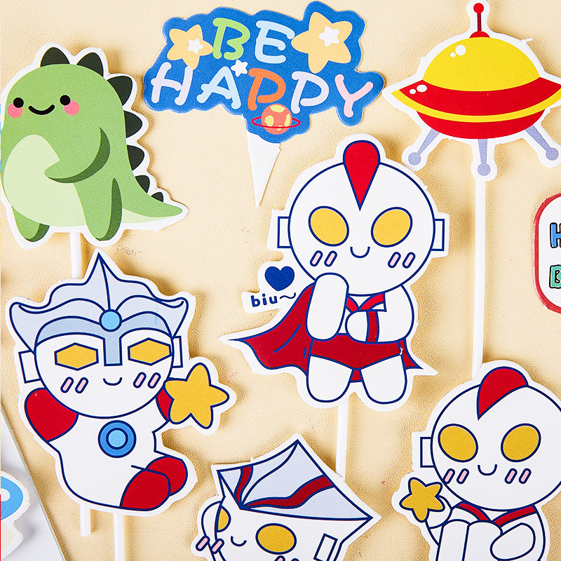 超人打怪兽生日蛋糕装饰插件网红英雄儿童男孩卡通周岁生日插牌