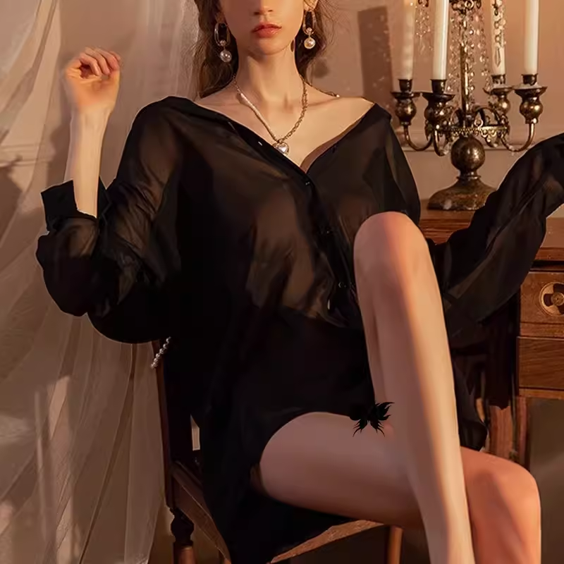 性感睡衣女夏季衬衫睡裙白色薄款透明情侣家居服套装高级感2023年
