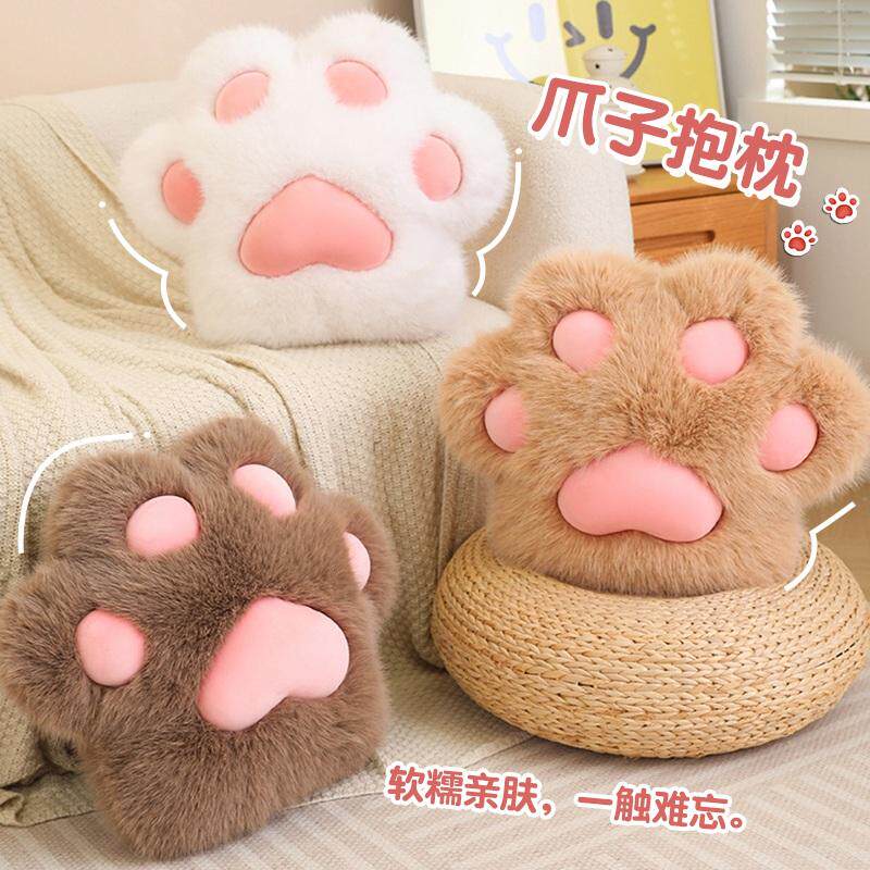 熊爪抱枕猫爪腰靠坐垫高档小米貂卡通爪子熊掌毛绒玩具靠垫女保暖