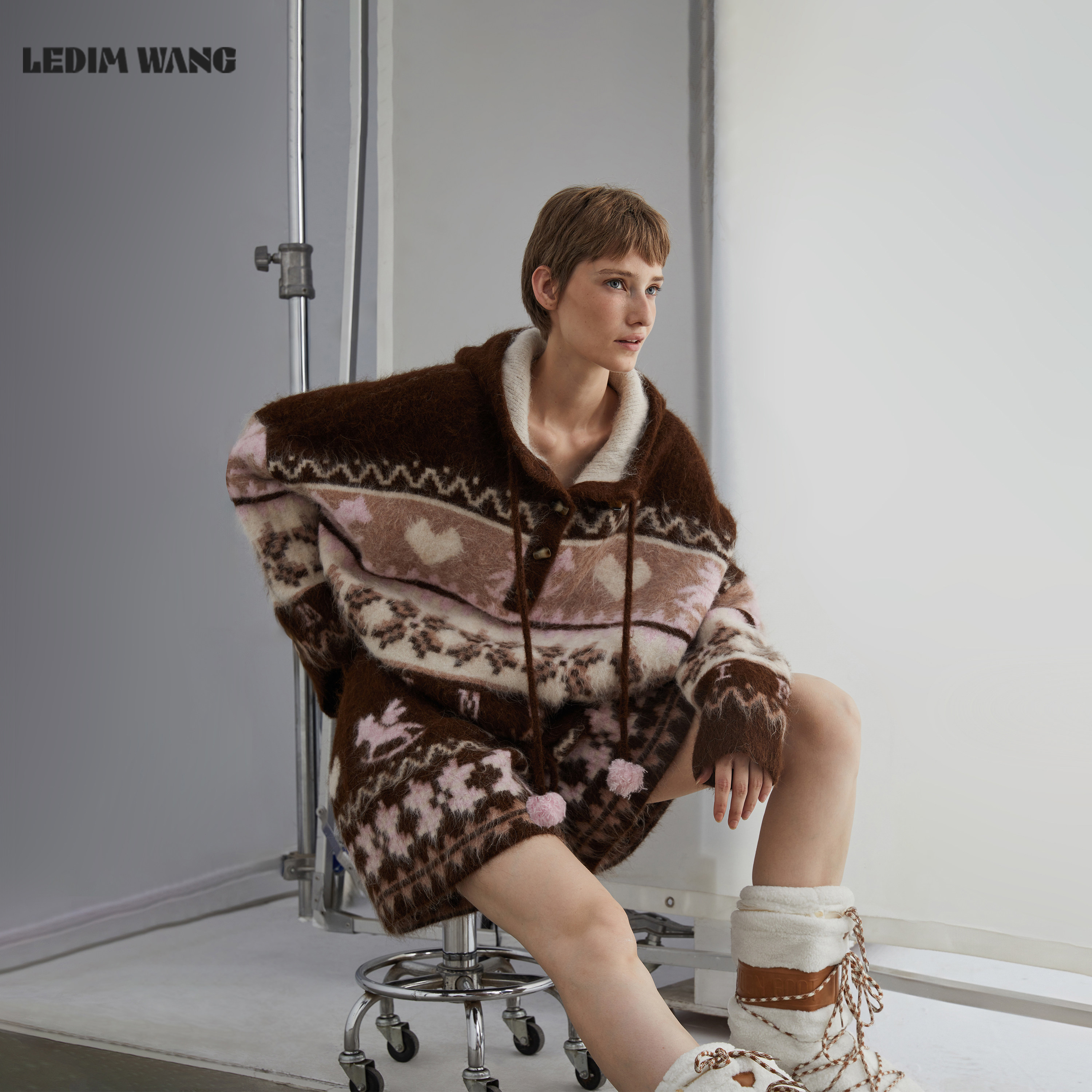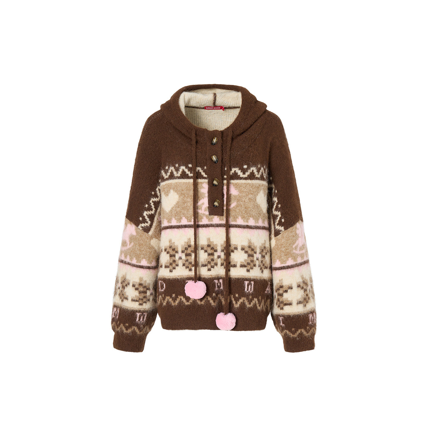 【明星同款】LEDIM WANG圣诞穿搭费尔岛毛衣女25冬季棕色连帽新款