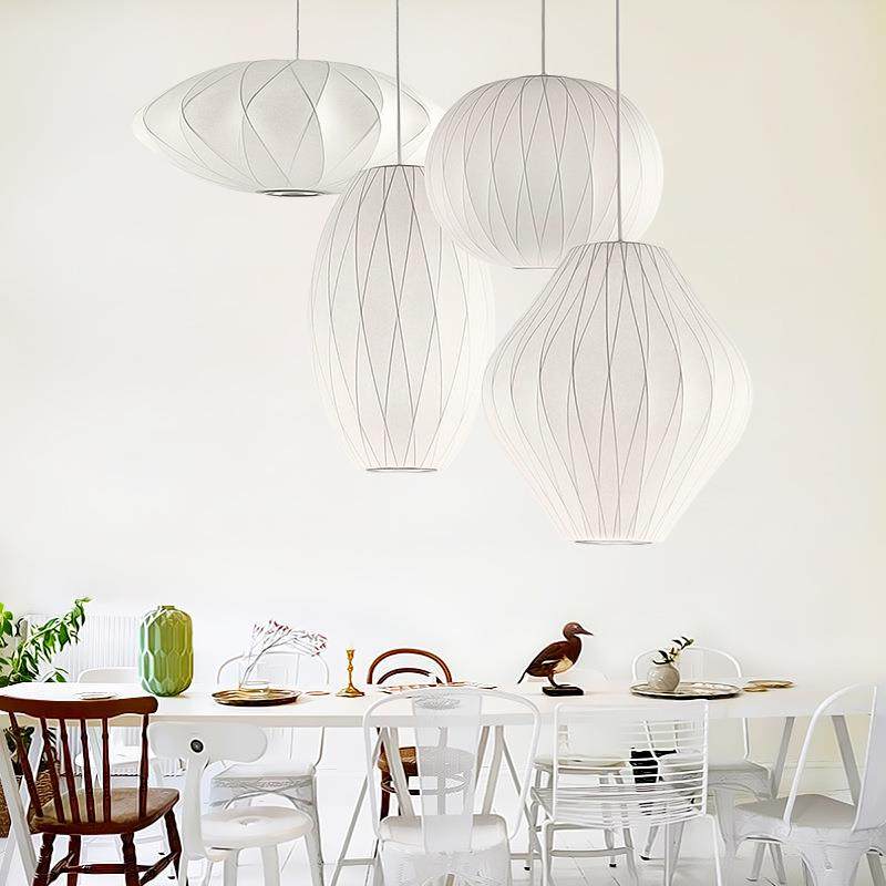 日式蚕丝吊灯简约个性中式三头卧室吧台服装店灯笼布艺餐厅饭厅灯