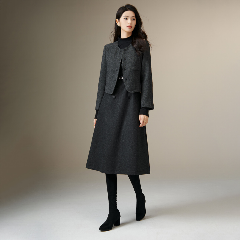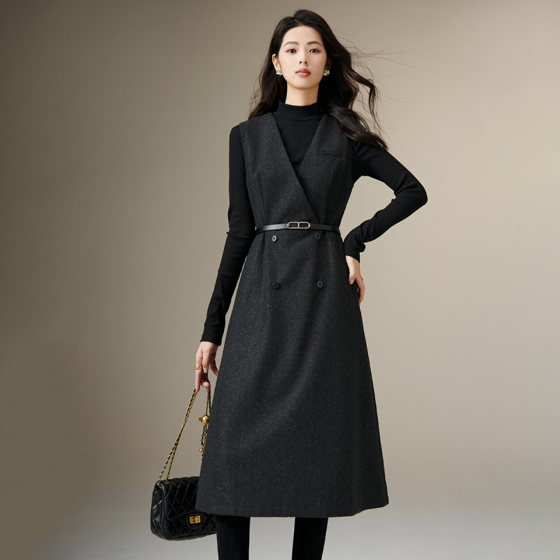 晚白【含羊毛单件无袖背心裙】2025冬新款气质V领垂坠收腰连衣裙