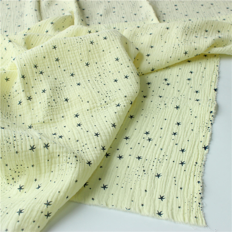 棉麻绉布 双层纱布印花 童装衣服布料 泡泡纱 防蚊裤 睡衣面料