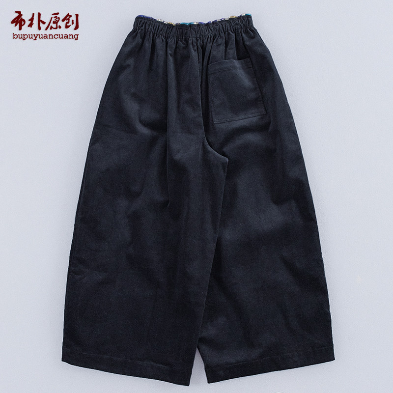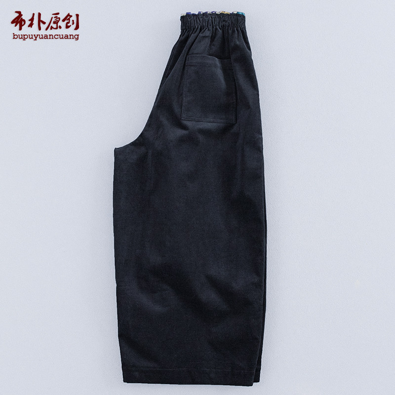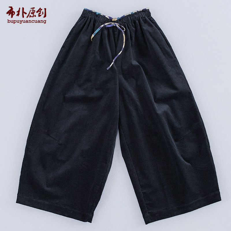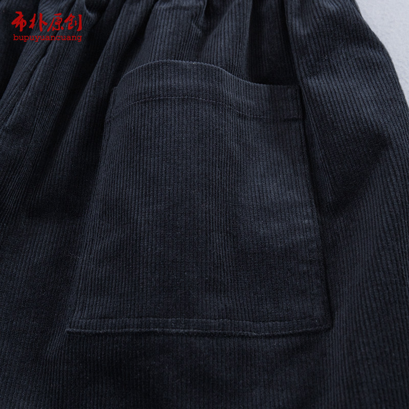 布朴壹旧2025秋季新款文艺灯芯绒玄黑色宽松百搭复古女九分萝卜裤
