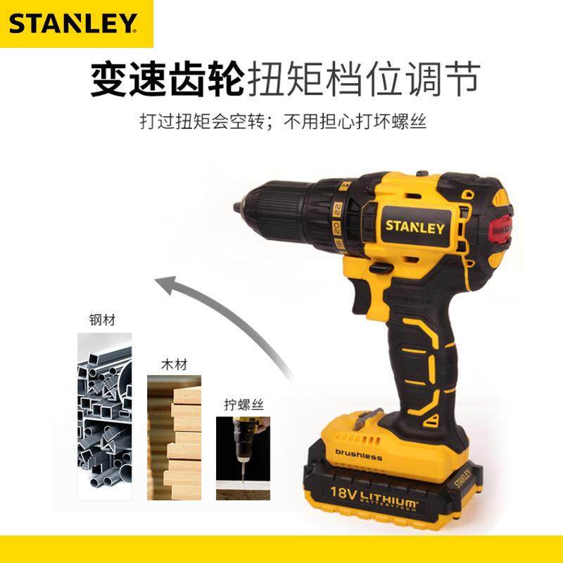 史丹利充电锂电钻无刷电钻起子机 电动螺丝刀手电钻手电转手枪钻