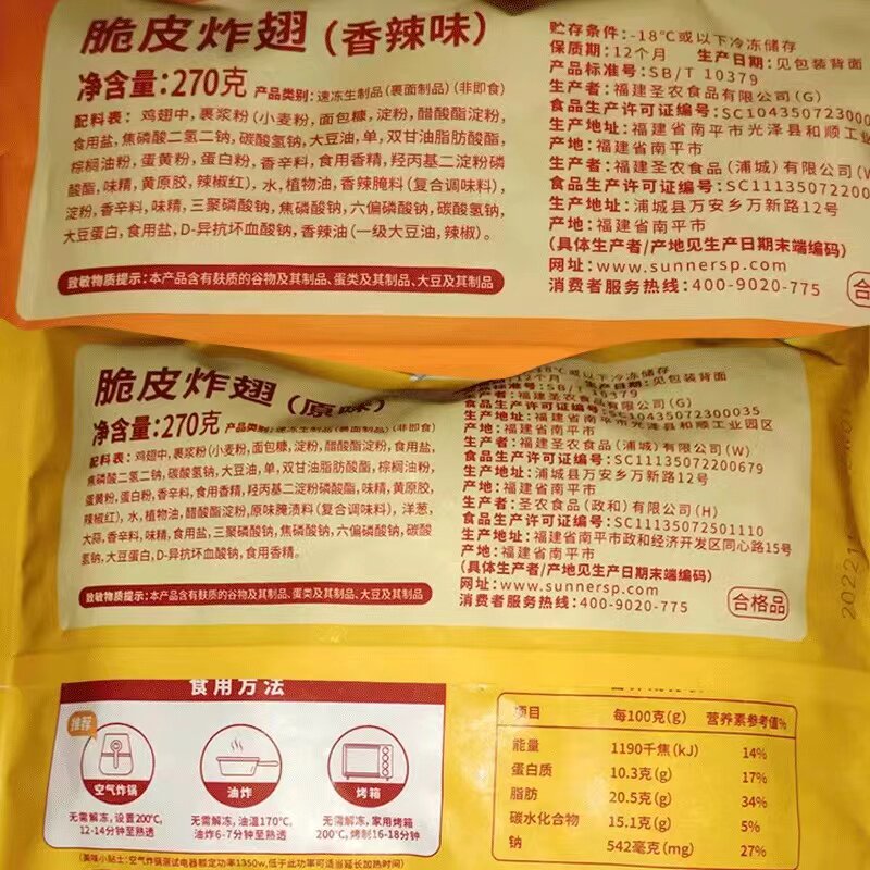 圣农脆皮炸翅冷冻翅中韩式炸鸡烤鸡翅油炸小吃半成品脆皮炸鸡网红