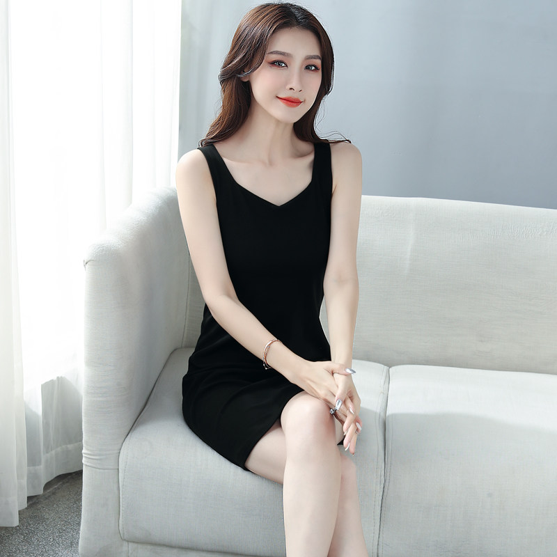 黑色吊带背心裙女修身收腰显瘦背带打底裙美背小个子内搭连衣裙夏