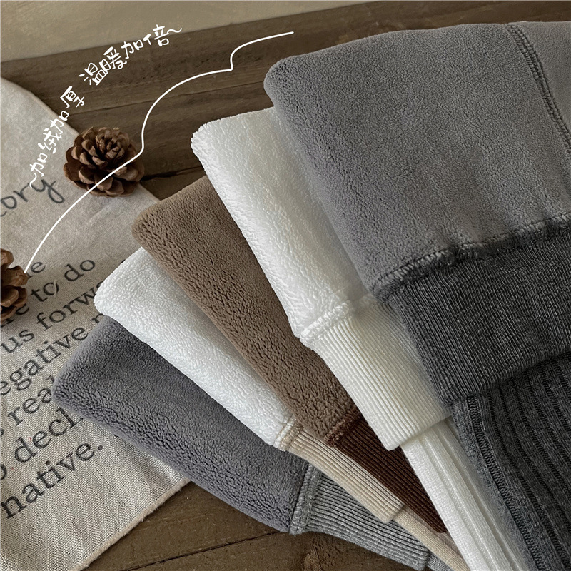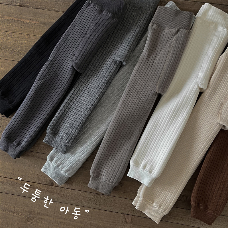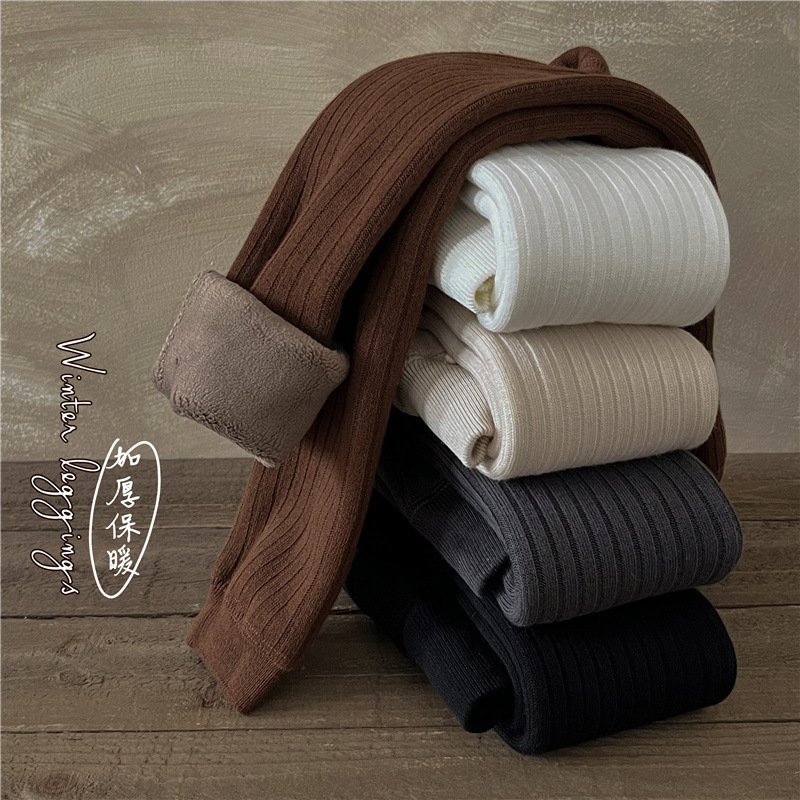 DJF878冬季新款儿童打底裤宝宝纯色加绒加厚九分裤宽条复合保暖裤