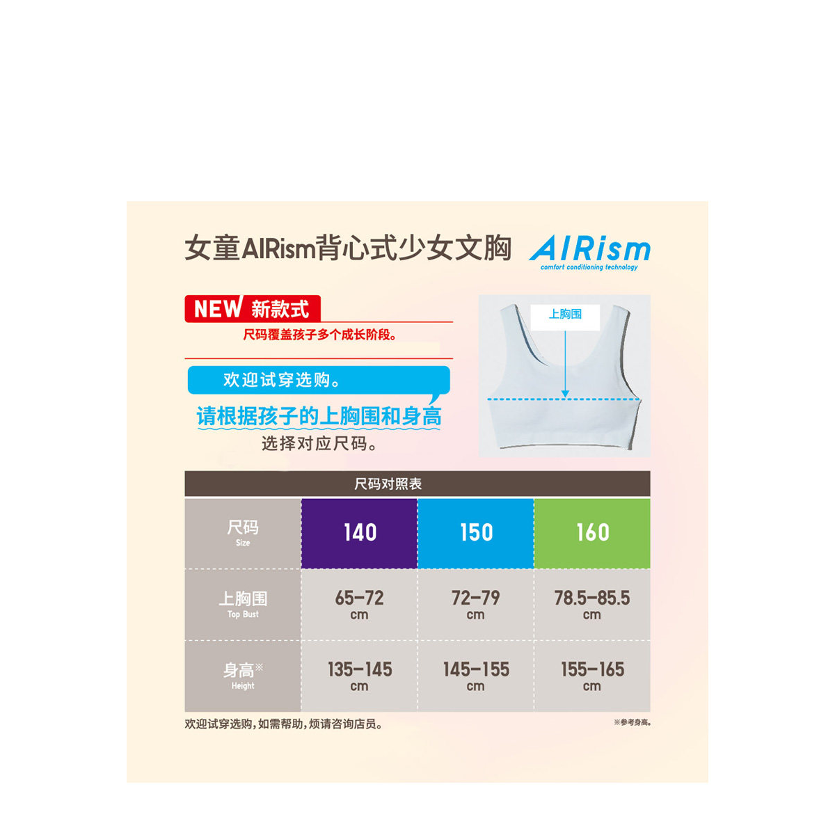 优衣库童装女童AIRism背心式少女文胸少女文胸防凸点482006