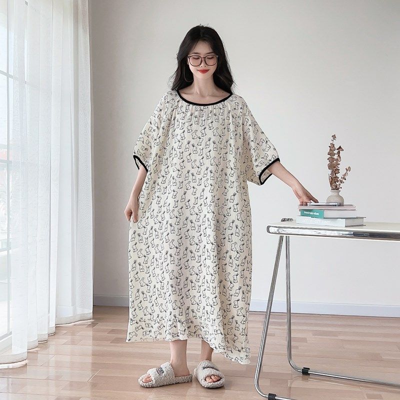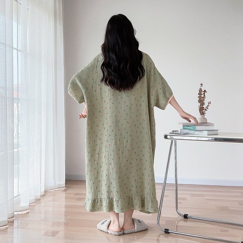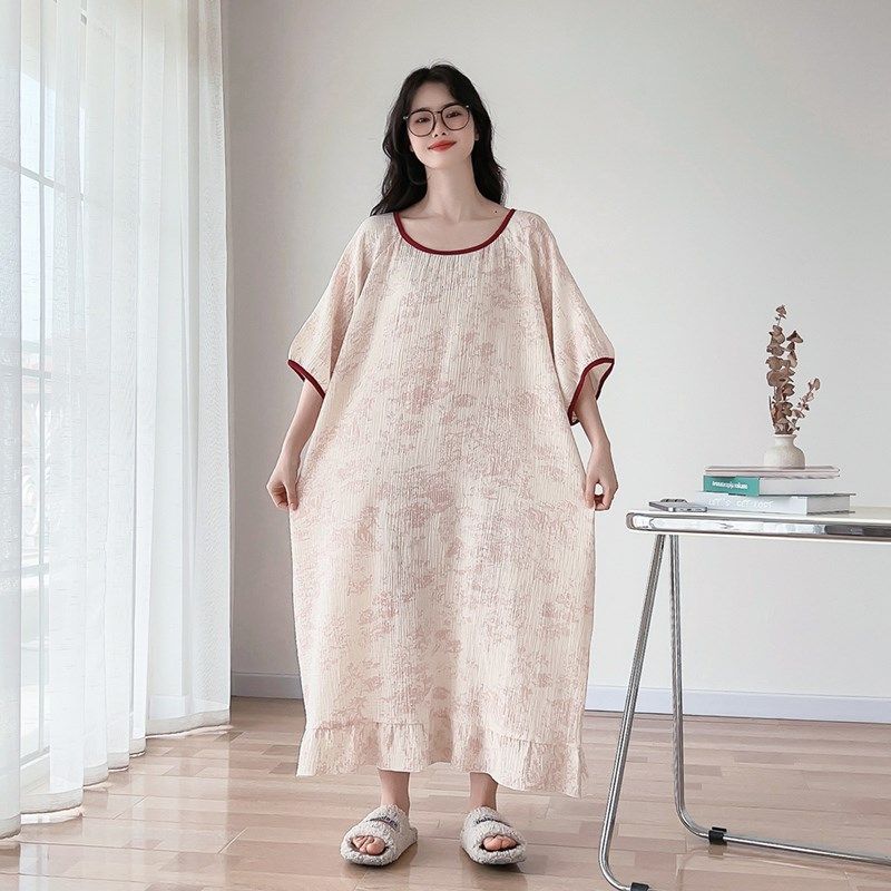 纯棉纱布睡裙女加大码胖mm200斤夏季短袖薄款宽松孕妇睡衣家居服