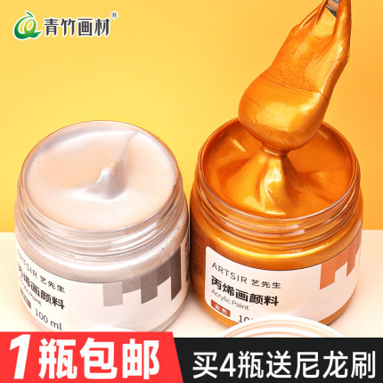 青竹 珠光颜料金色丙烯颜料珠光白100ml佛光金防水不掉色金色颜料银色荧光绘画涂鸦DIY鞋子石膏石塑粘土炳稀