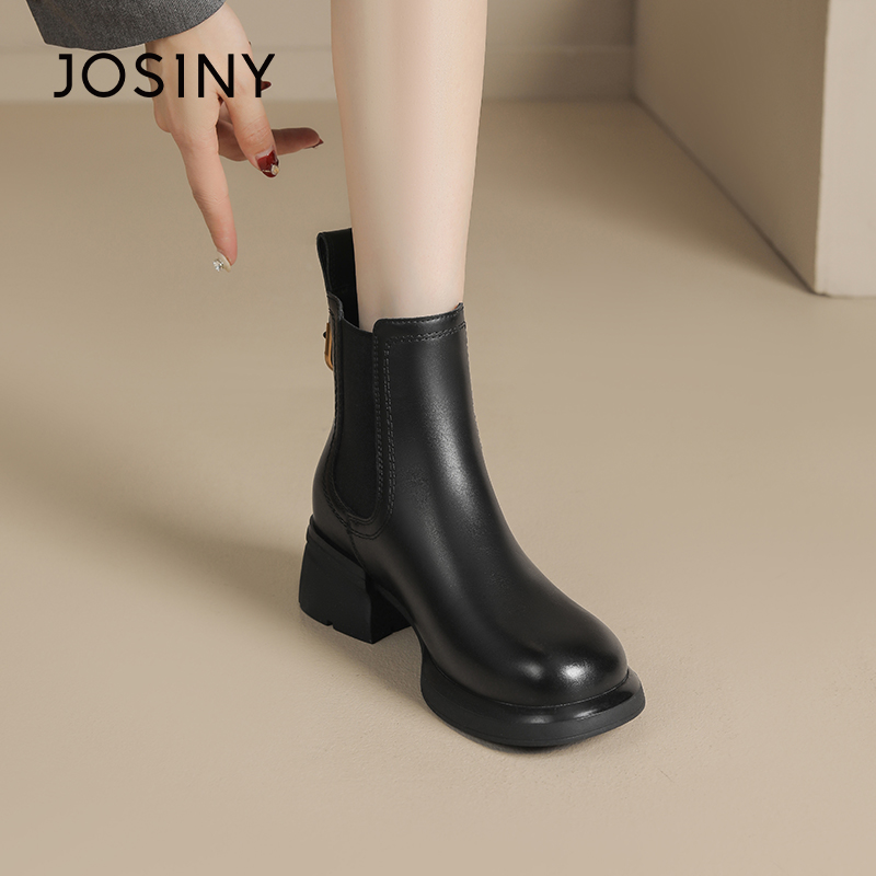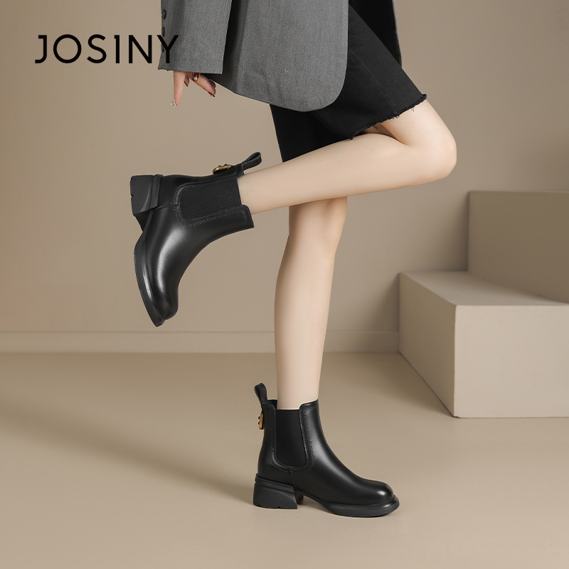 卓诗尼女靴冬季撤柜正品复古厚底切尔西靴弹力套筒舒适圆头百搭潮