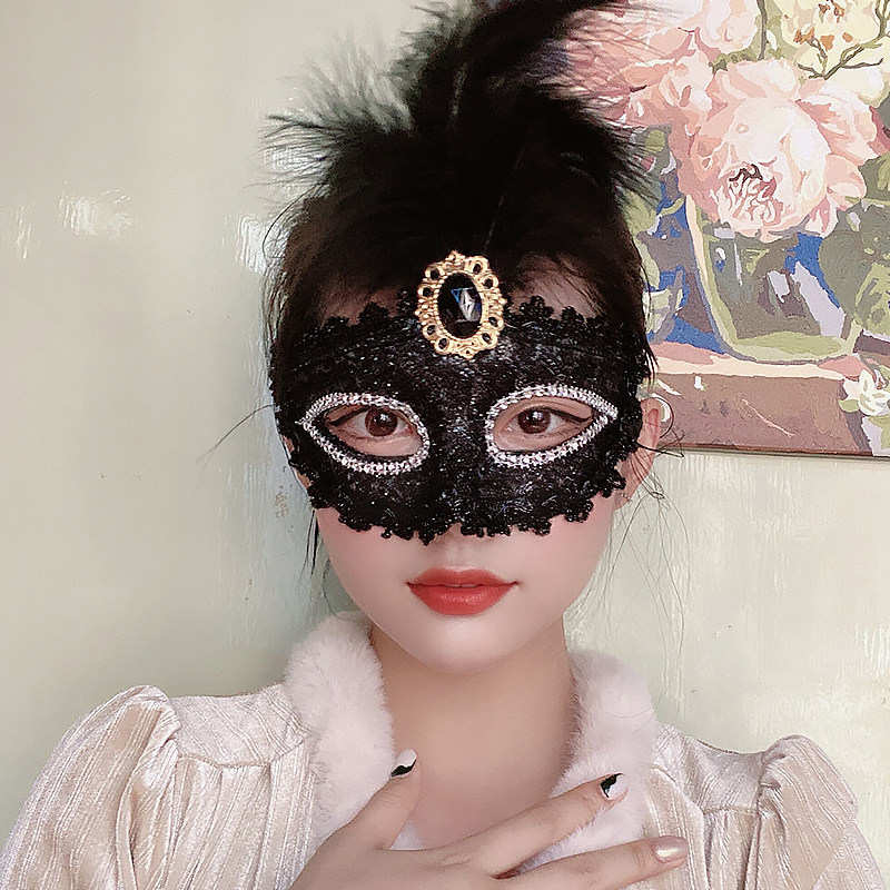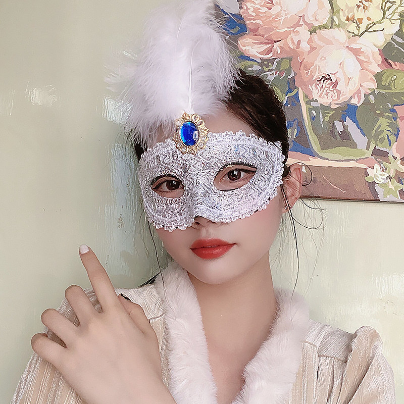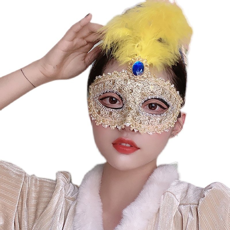 万圣节化妆舞会女款羽毛古风半脸公主面具舞台表演道具