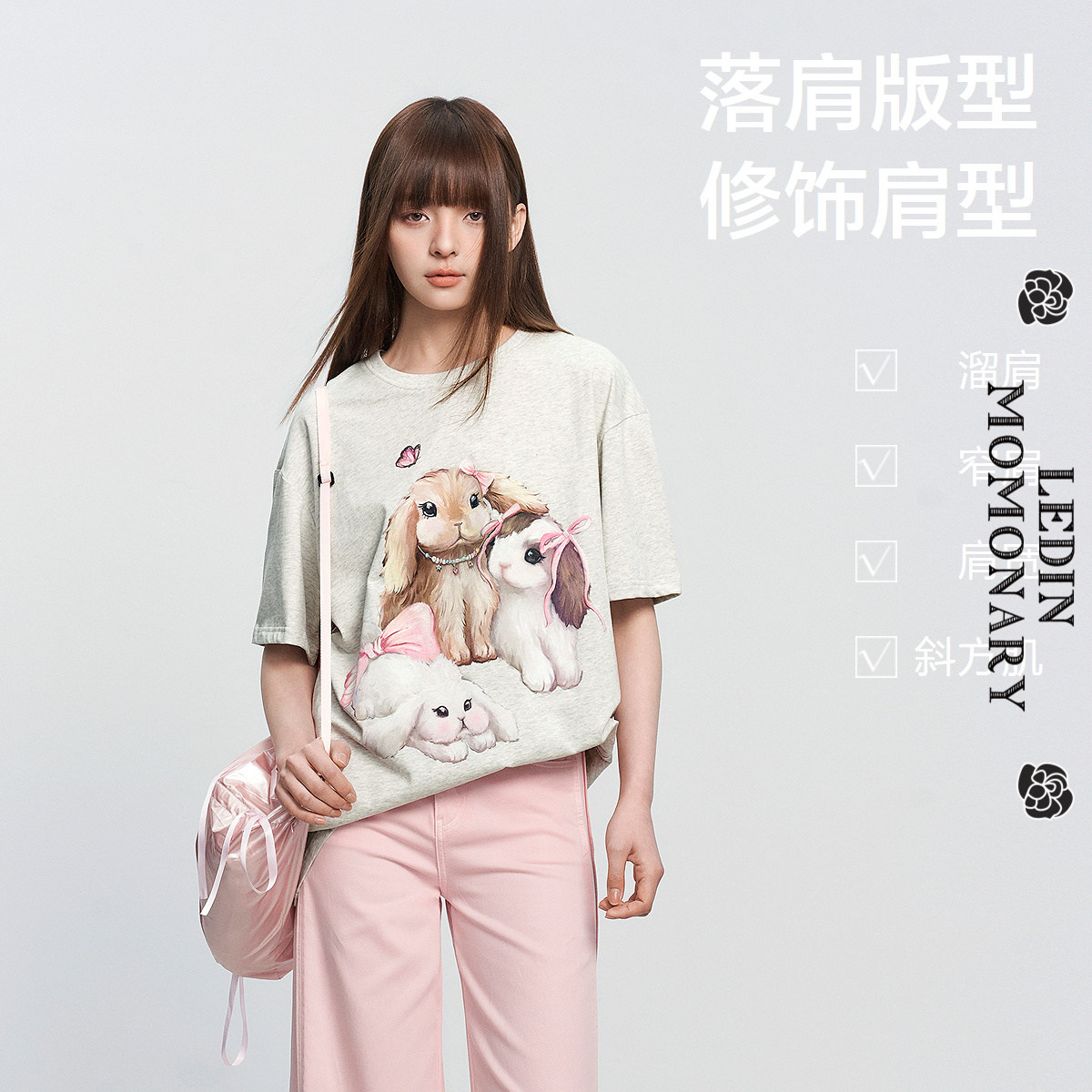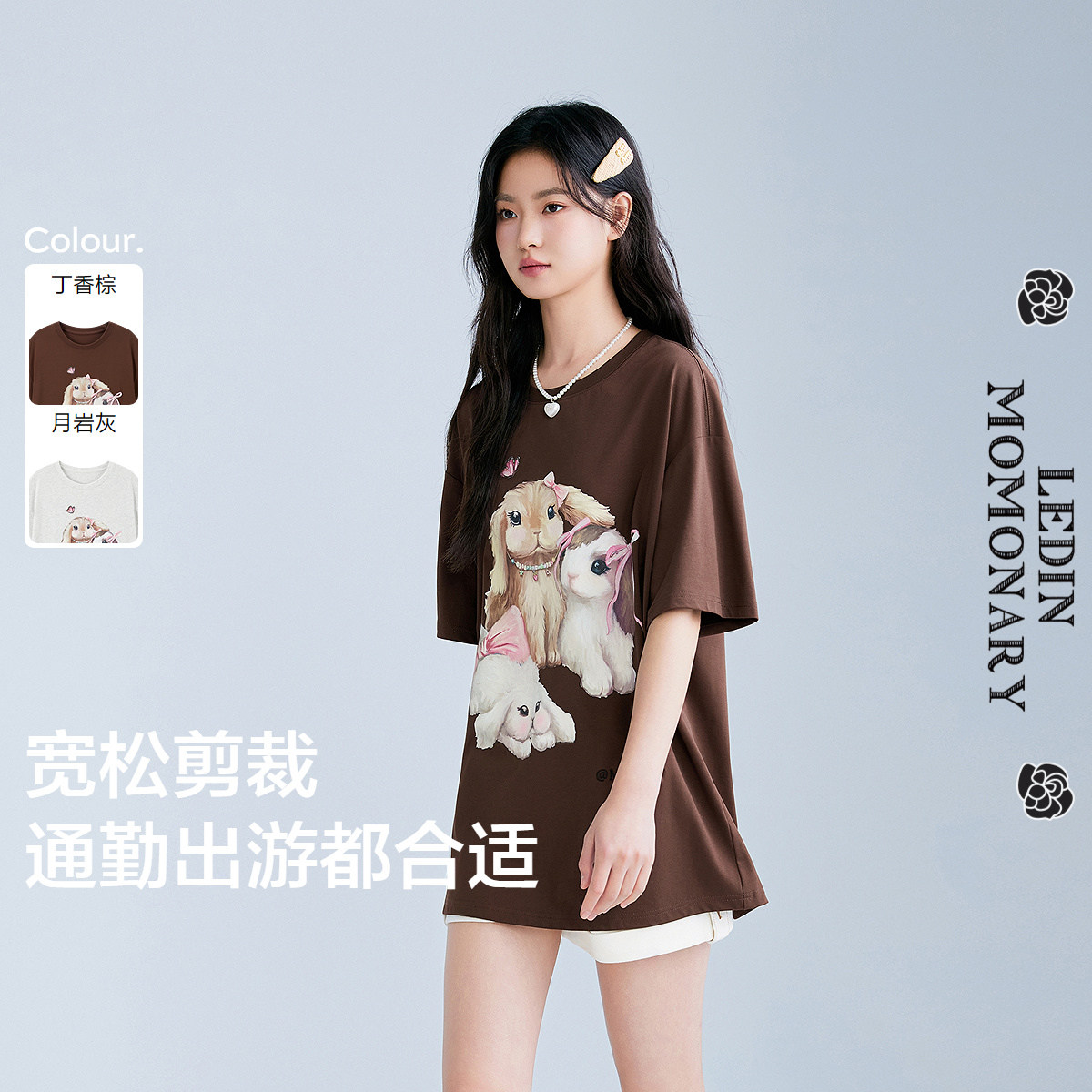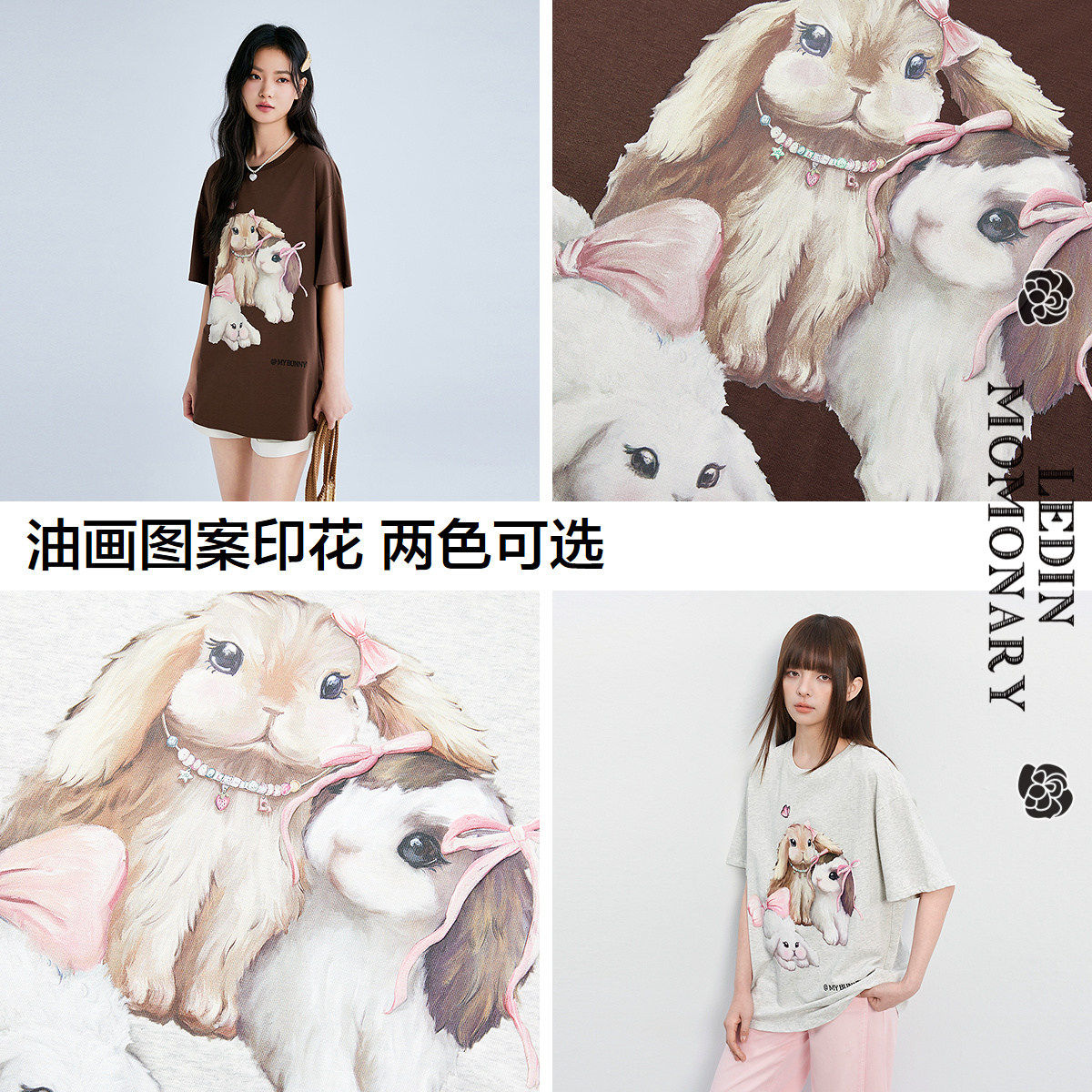 【商场同款】乐町韩系油画小兔宽松短袖秋季新款印花T恤C1CNF2203