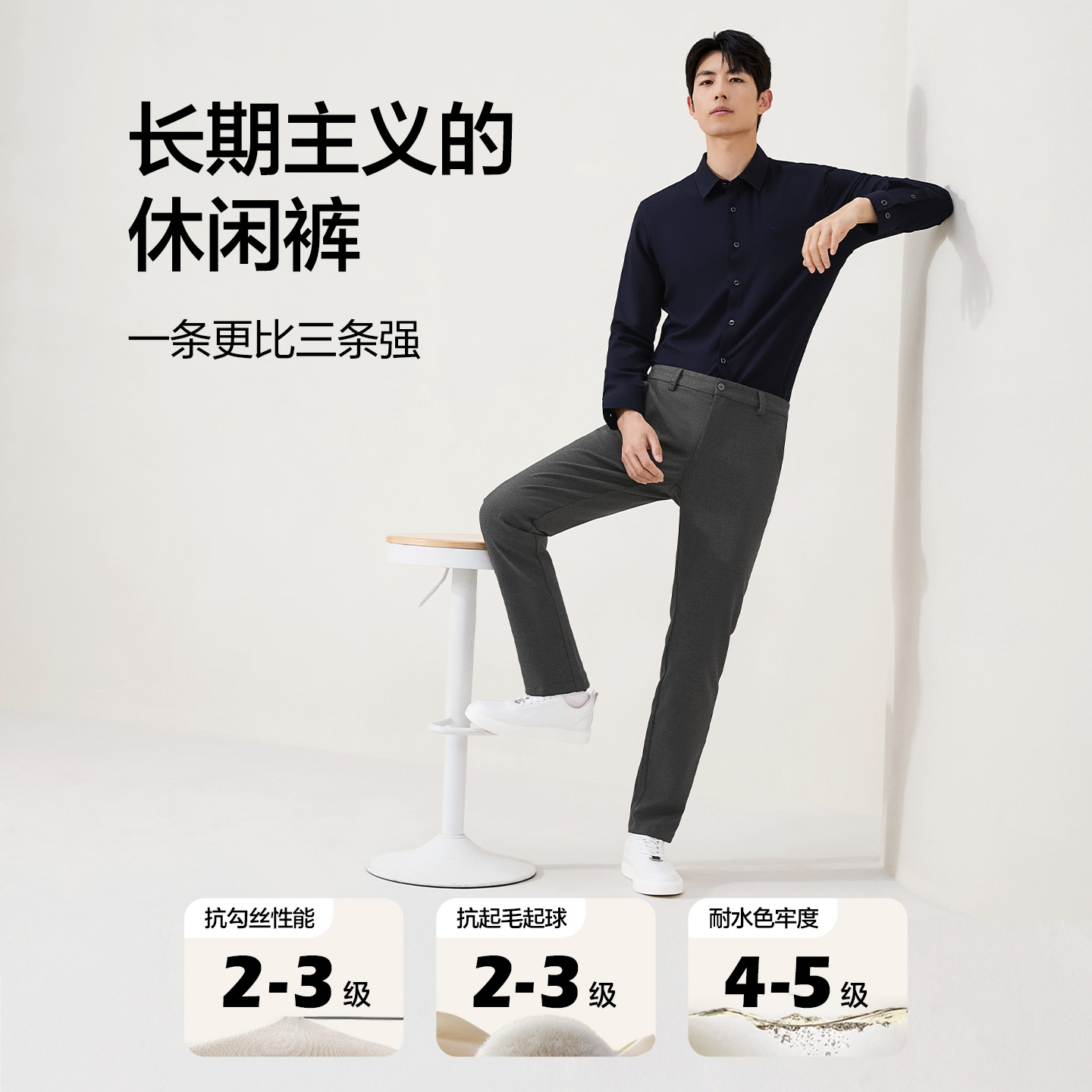 【含羊毛】柒牌男2025秋季新款提花修身直筒长裤商务保暖男裤子