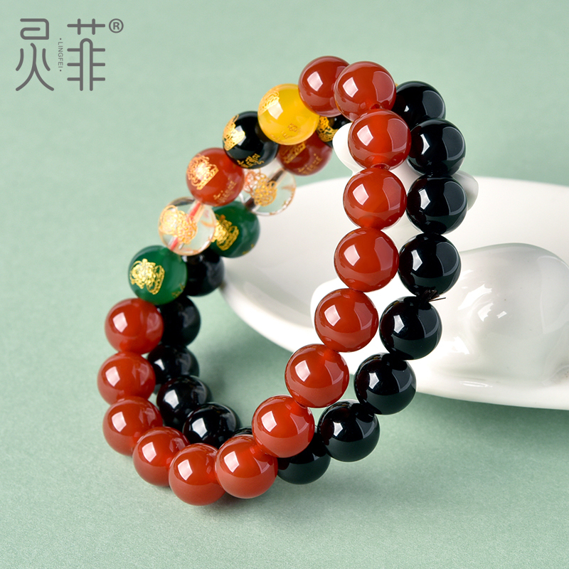 2025年五路财神玛瑙手链本命蛇年属蛇龙虎猴猪护身符佩戴手串男女