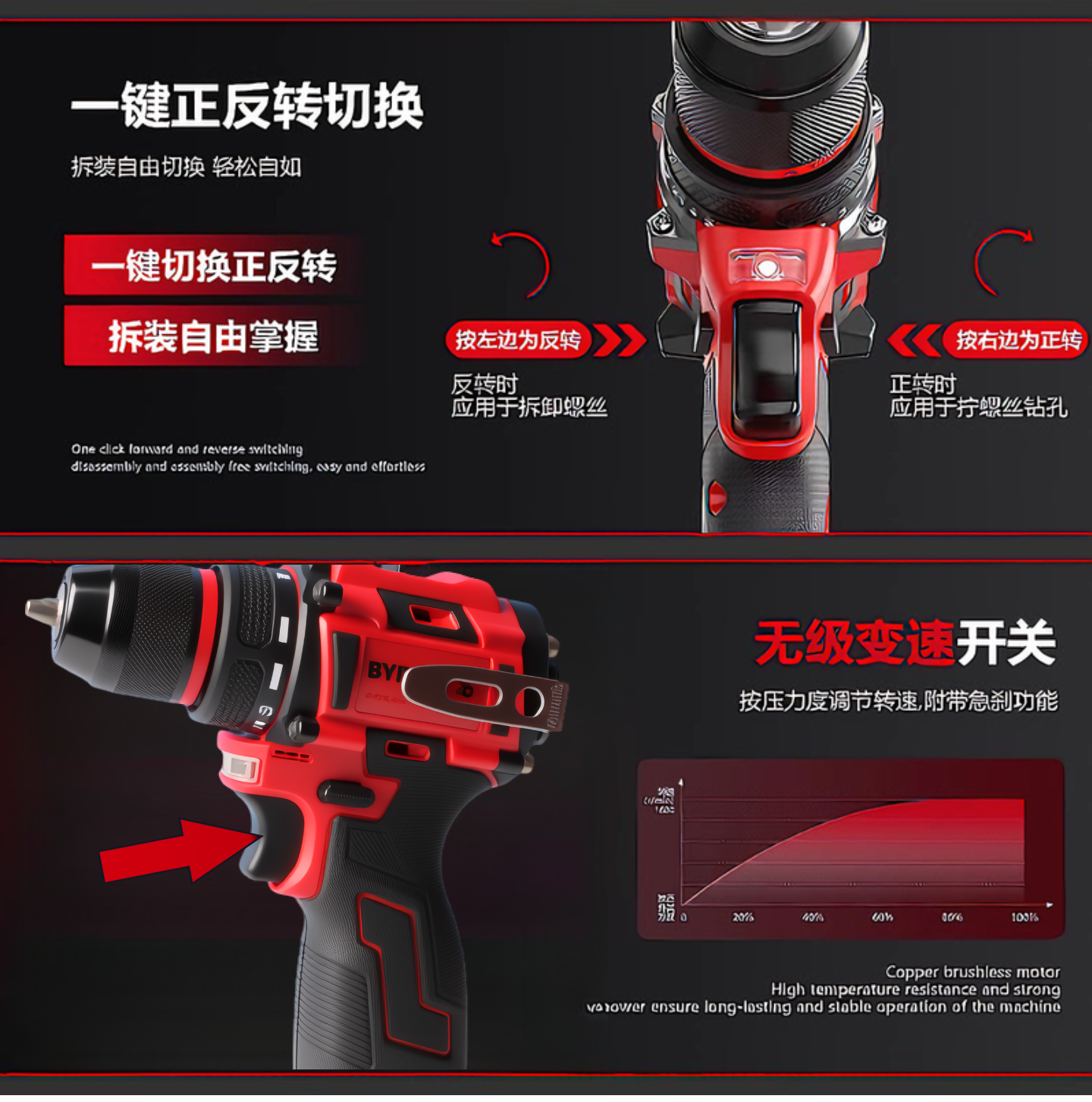 手电钻冲击锂电电转无刷充电式手枪钻孔工具家用多动能电动螺丝刀