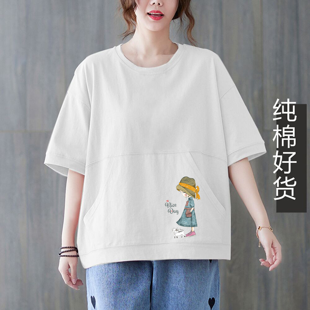纯棉短袖t恤女夏季宽松口袋上衣