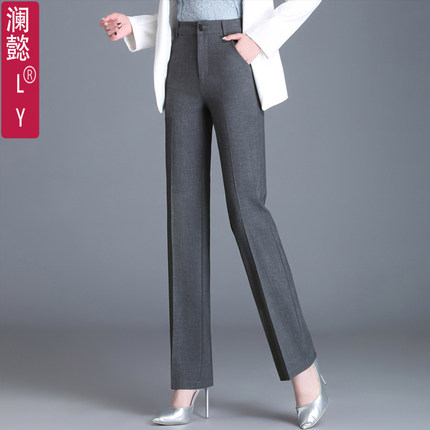澜懿秋冬厚款垂顺直筒裤小脚裤高腰职业女裤九分烟管裤灰色西裤女