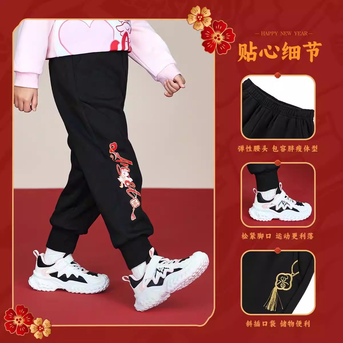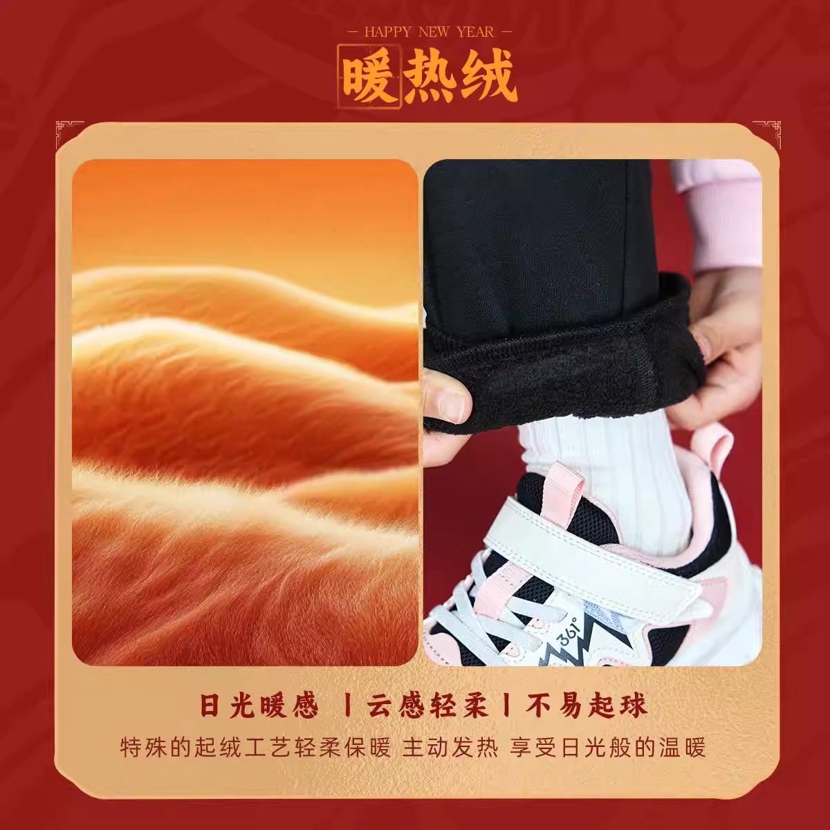 361°女童加绒长裤束脚新品2026春秋卫裤小童新年运动裤N62614501