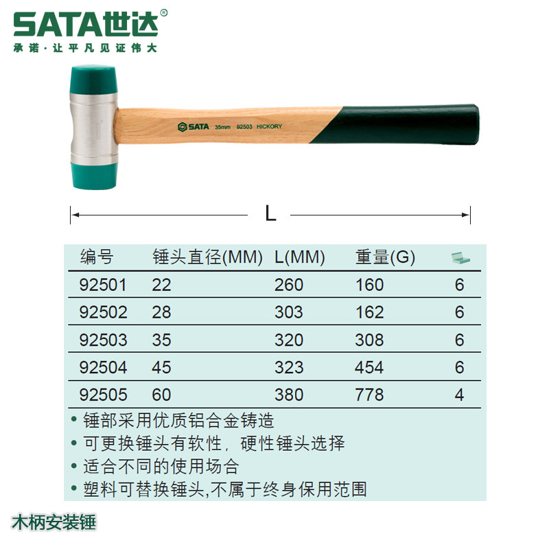 世达五金工具22-60MM不是橡胶锤子可换头榔头木柄安装锤 92501