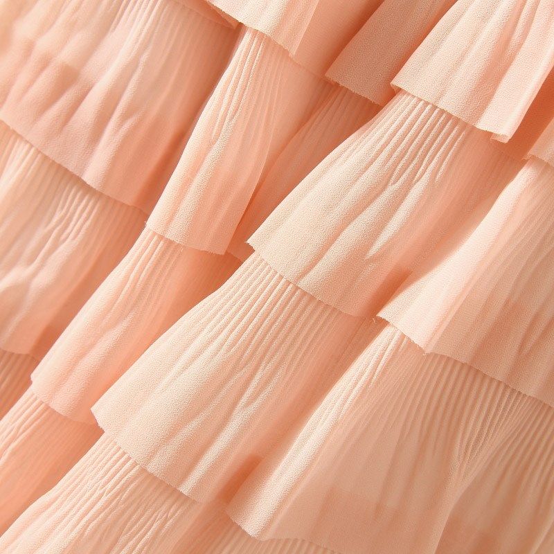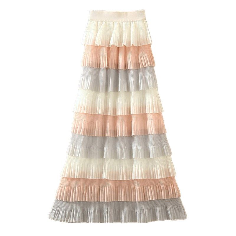 2024春夏新款多层次蛋糕裙高腰彩色层层百褶裙雪纺中X长款半身裙
