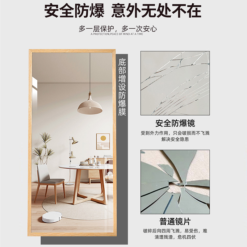 日式原木风全身镜子家用实木穿衣镜壁挂贴墙试衣镜衣帽间落地镜子