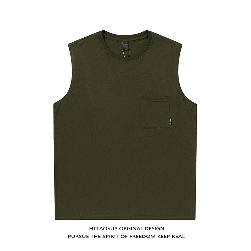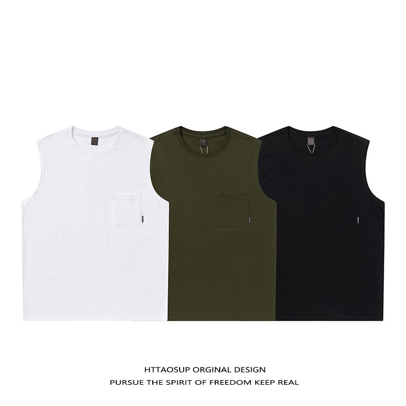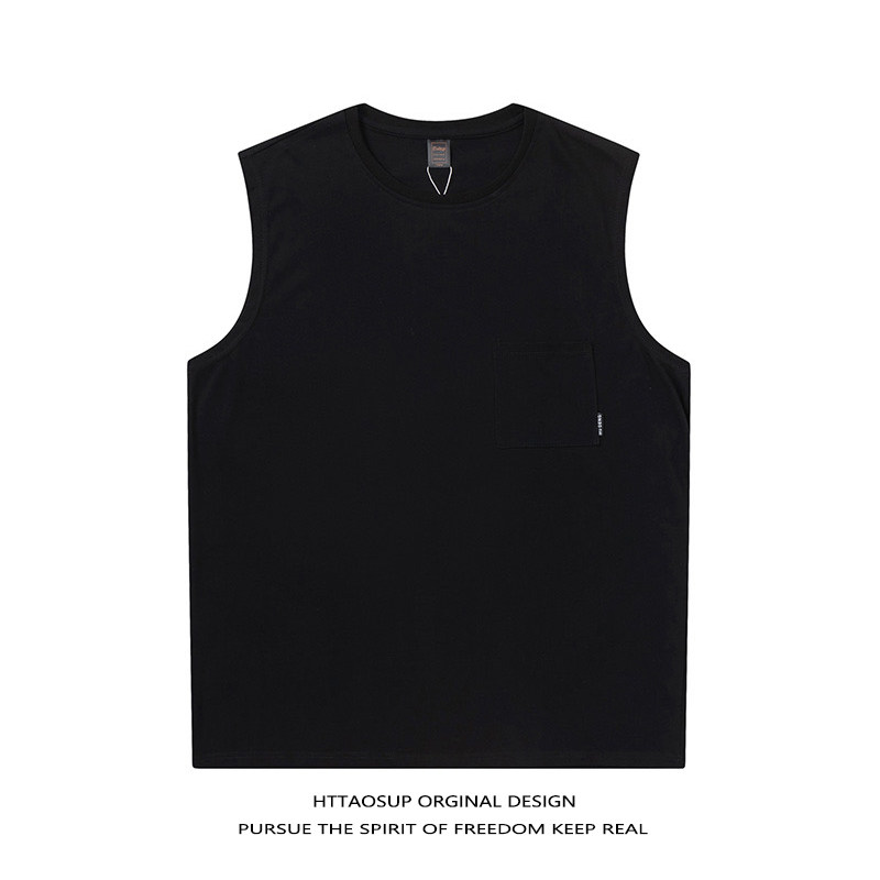 HTTAOSUP纯棉背心男女夏季潮牌宽松百搭口袋运动无袖t恤潮流坎肩