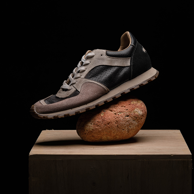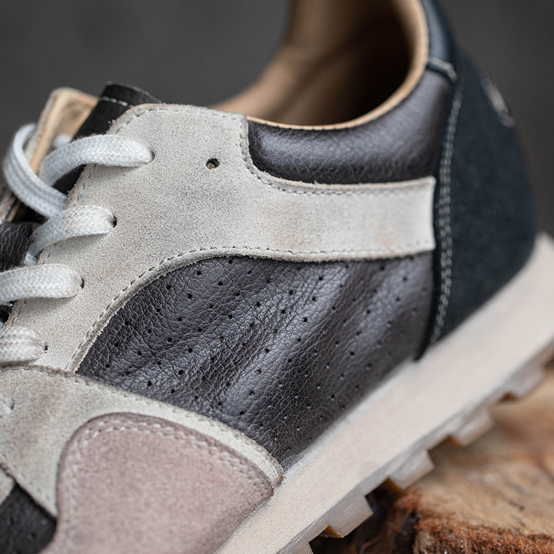 周莹牛皮柔软透气夏季复古运动休闲鞋手工泥染慢跑阿甘鞋脏旧男鞋