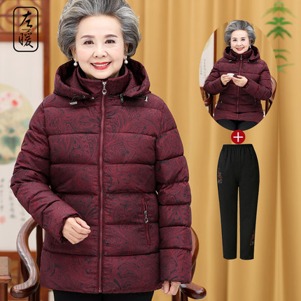 中老年人女装棉衣60-70岁80妈妈装冬装羽绒棉服老人奶奶外套连帽