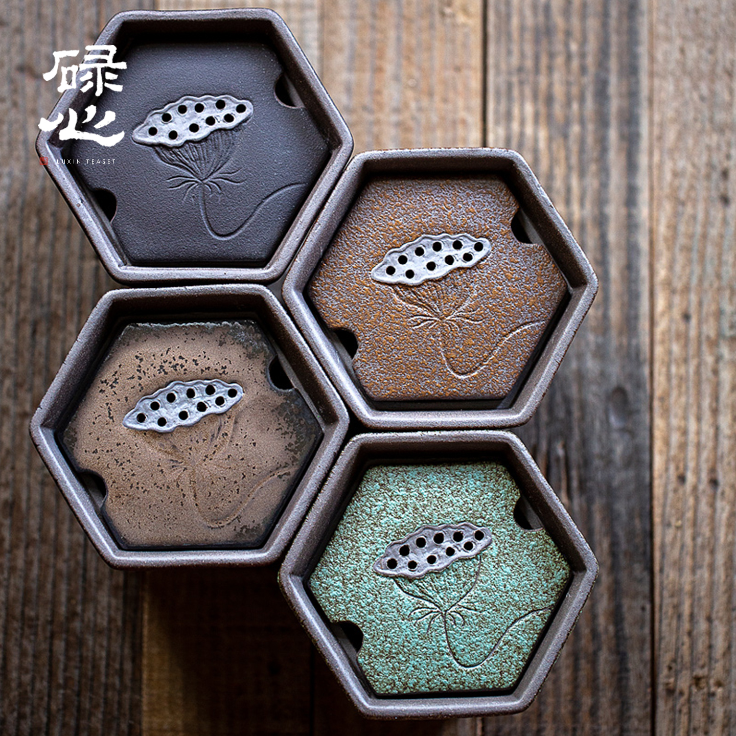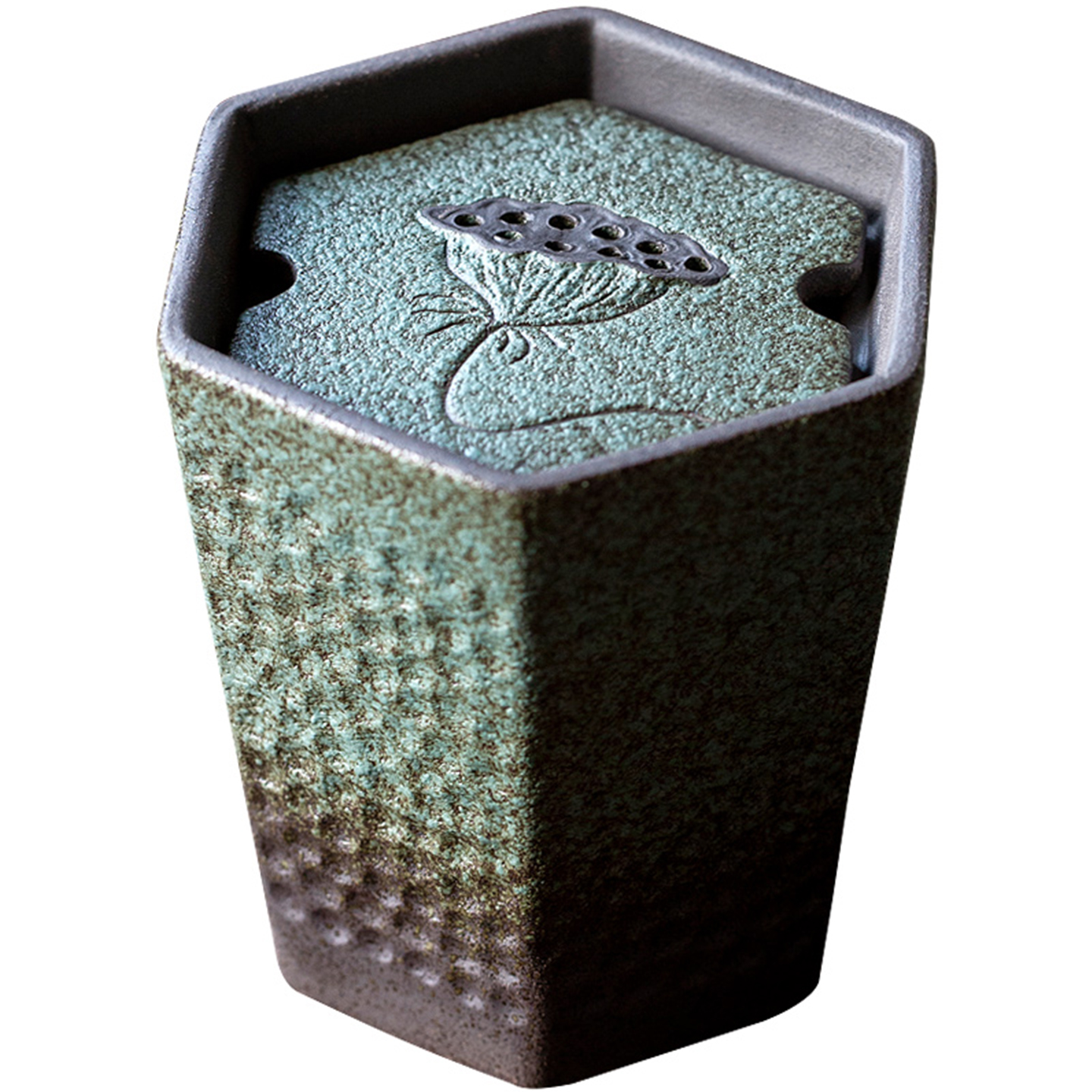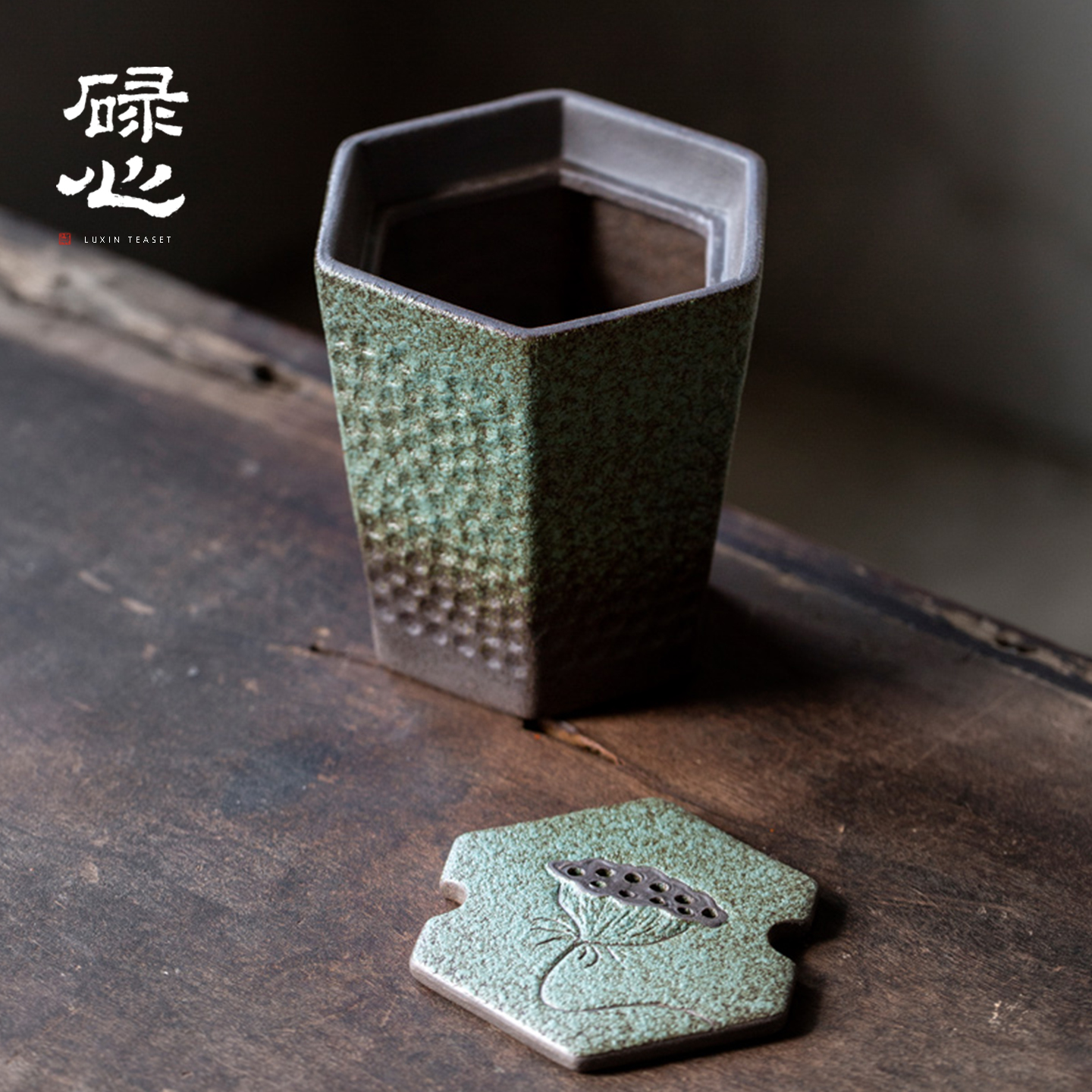 碌心 窑变粗陶六方建水 家用禅意茶渣缸带盖茶洗复古大号水盂茶盂