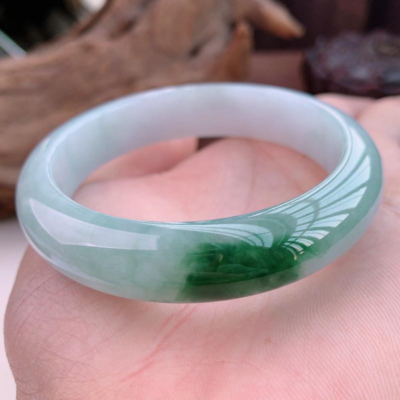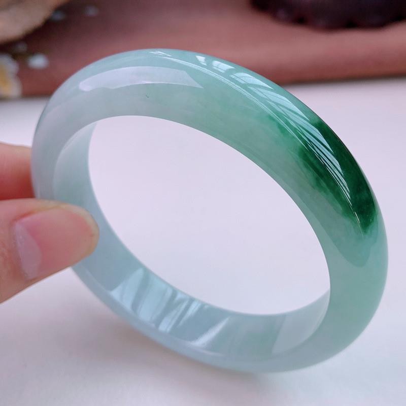 缅甸老坑翡翠玉手镯翠绿飘绿花冰糯种玉镯子玉石女款处理