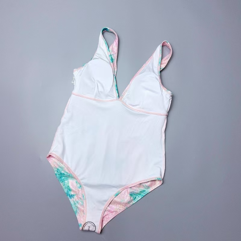 Amber新款高级感烫金闪亮女士三角连体游泳衣性感深V领美背带胸垫