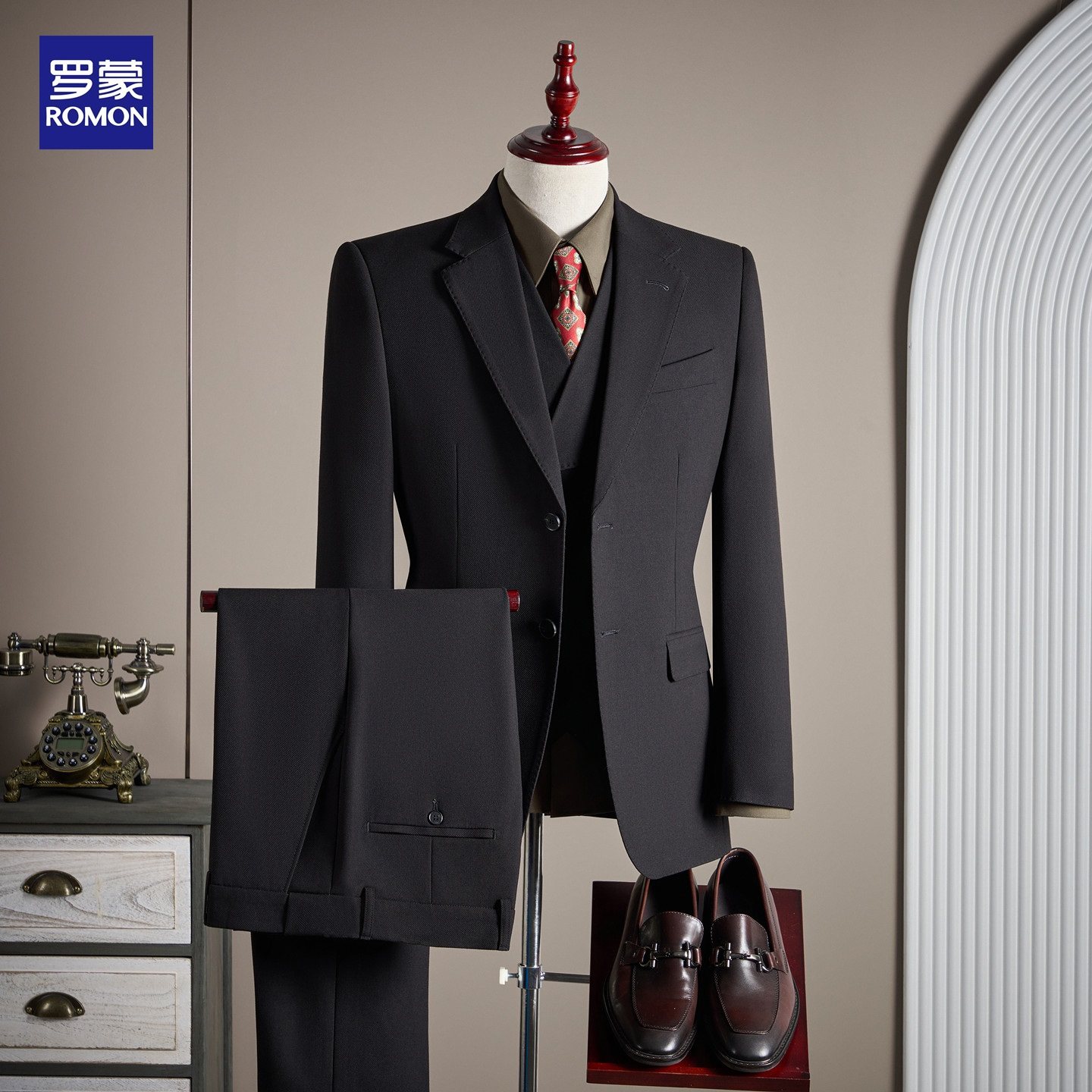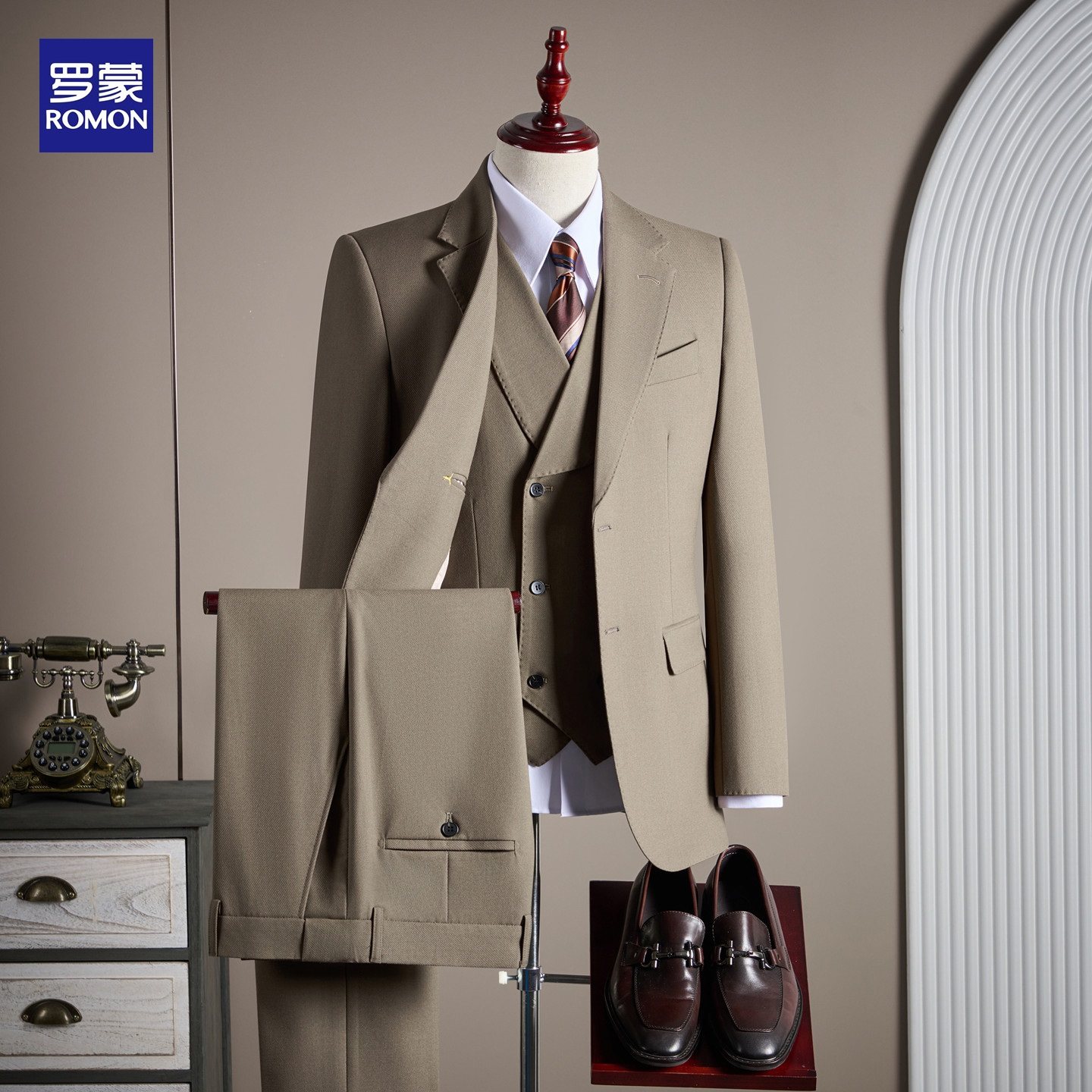 罗蒙西服套装男士商务正装高级感高定英伦风西装修身新郎结婚礼服