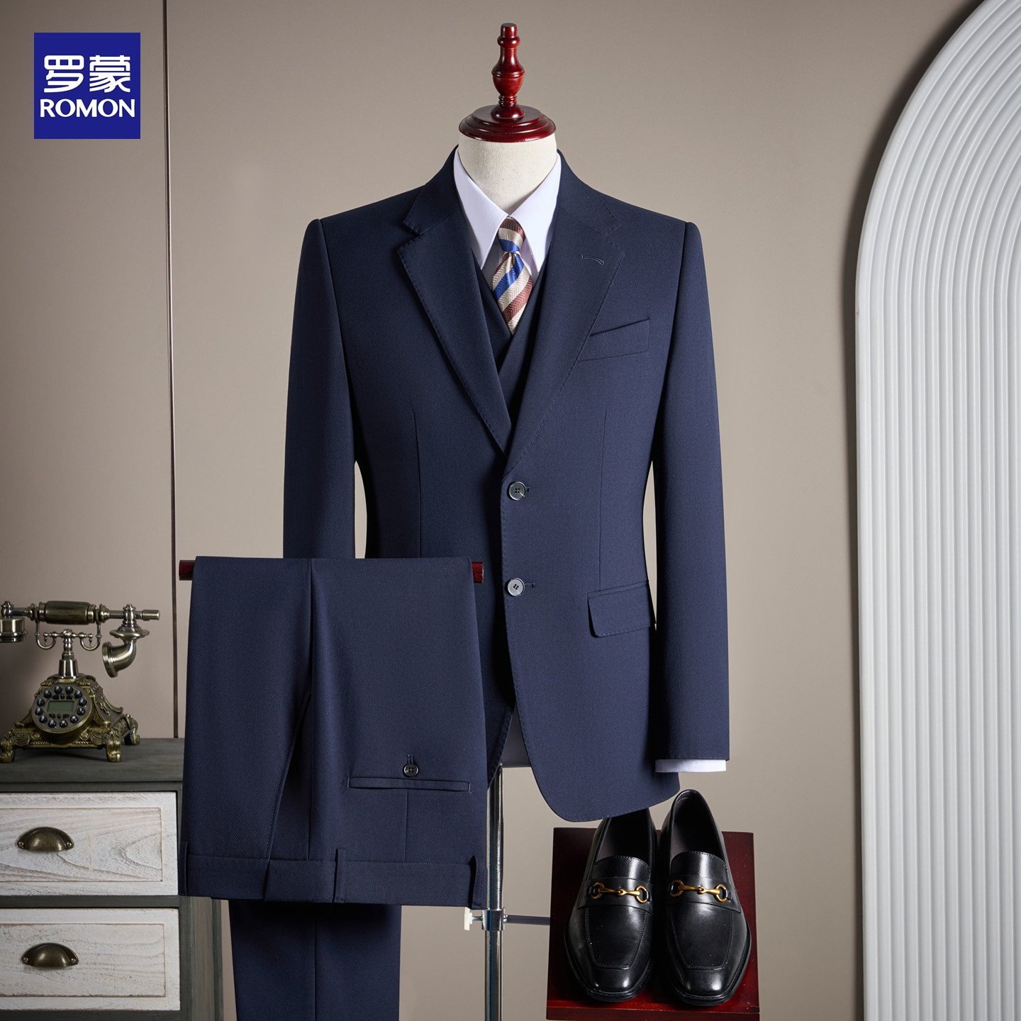 罗蒙高端羊毛西装男套装结婚正装