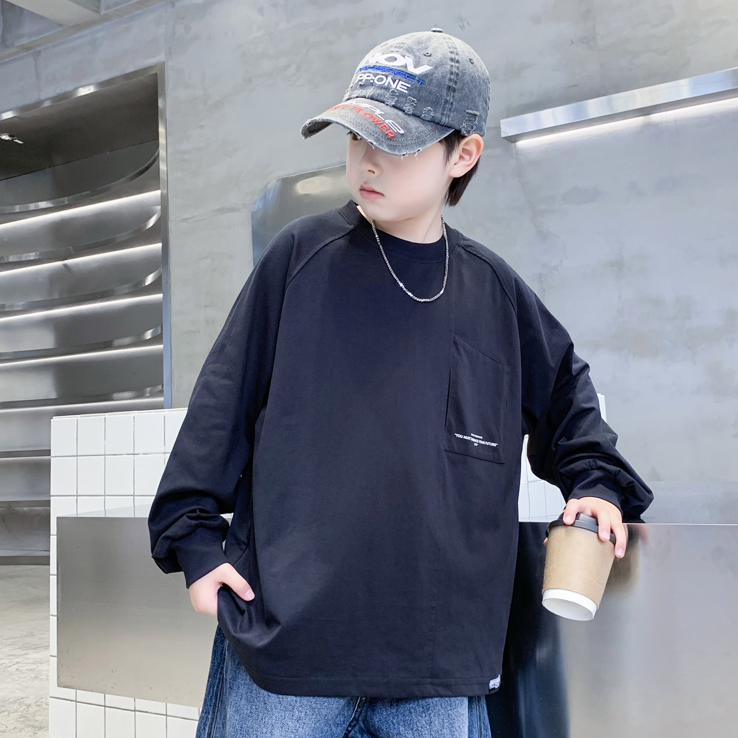 男童打底衫春秋新款纯色白色儿童卫衣T恤长袖体恤秋装男孩中大童t