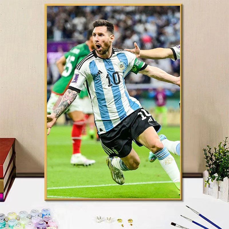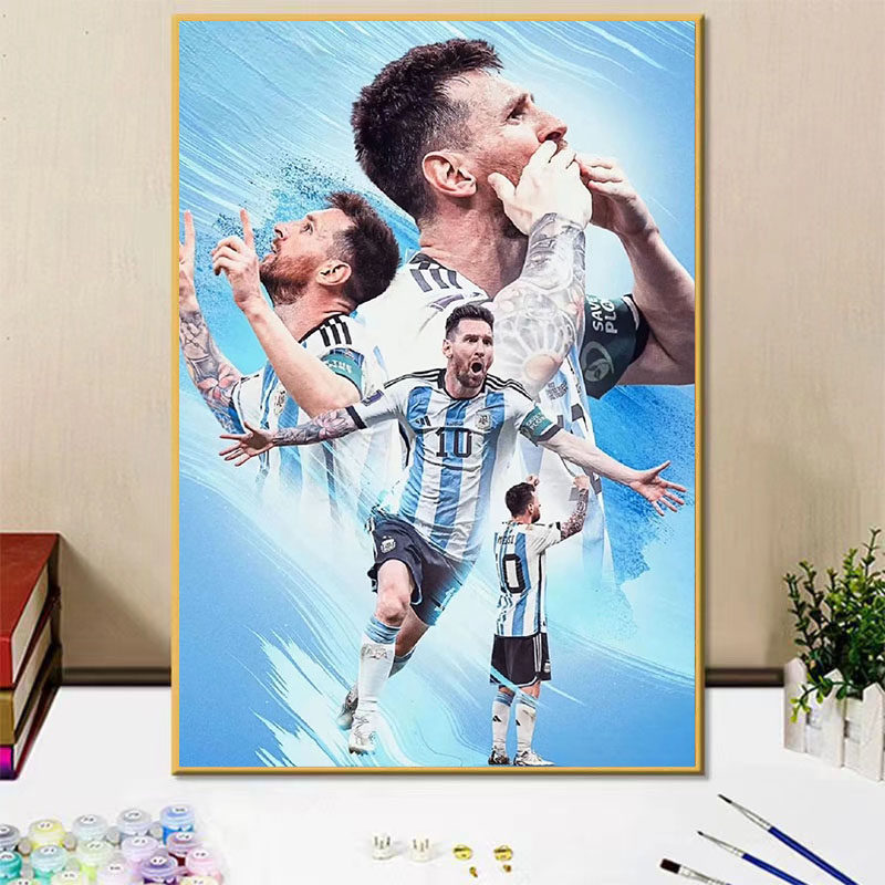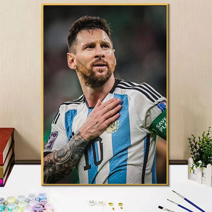 里奥梅西足球明星diy数字油画手绘填色画画送男朋友老公生日礼物